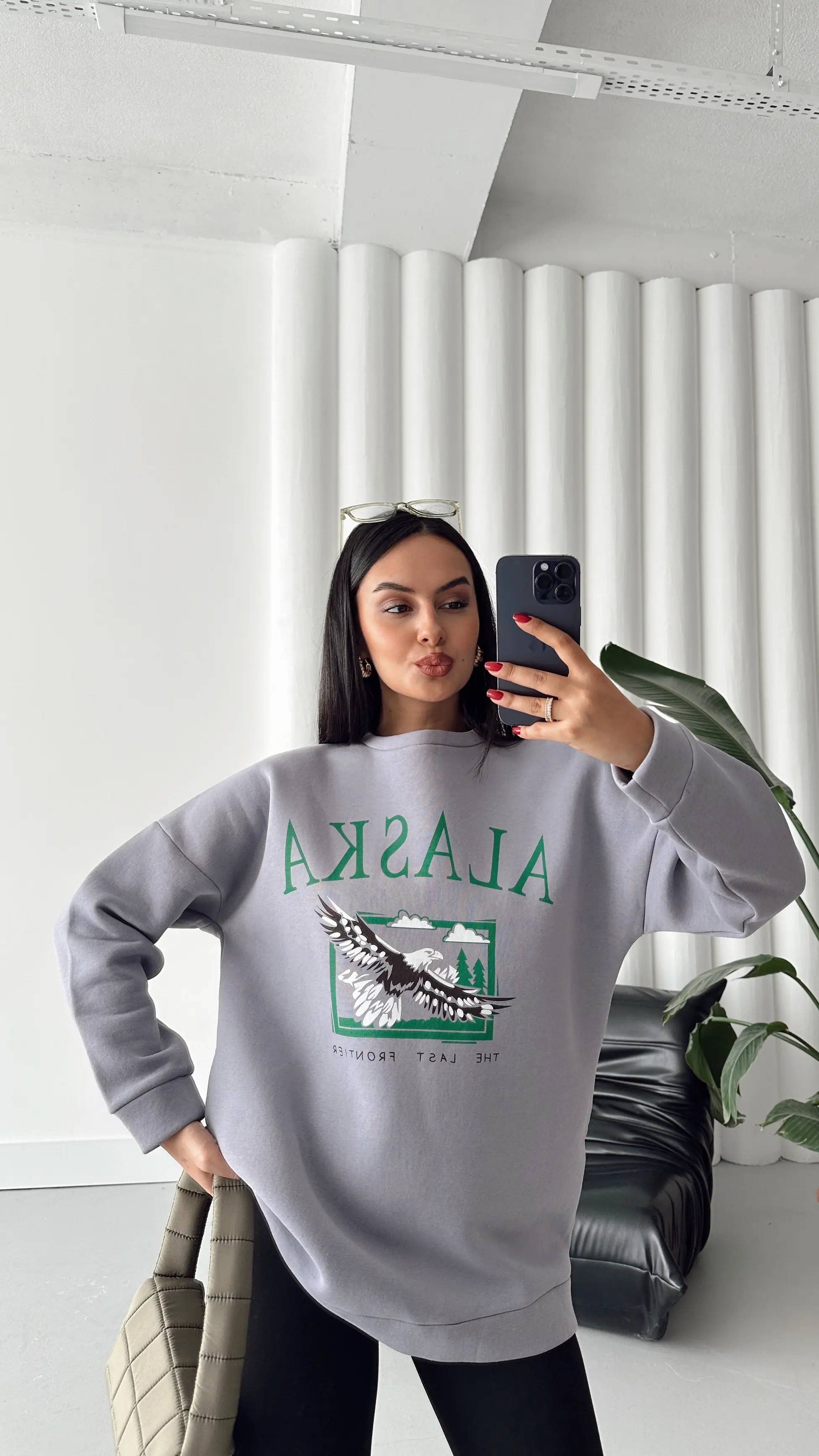 Bu oversize sweatshirt, üç iplik dokusu ve modern tasarımıyla öne çıkıyor. Hem rahat hem de stil sahibi olan bu ürün, her mevsimde giyilebilir ve her kombinle mükemel uyum sağlar. Alaska Üç İplik Oversize Sweat ile tarzınıza bir dokunuş ekleyin. Şimdi sipariş verin ve şıklığınıza kalite katın.
