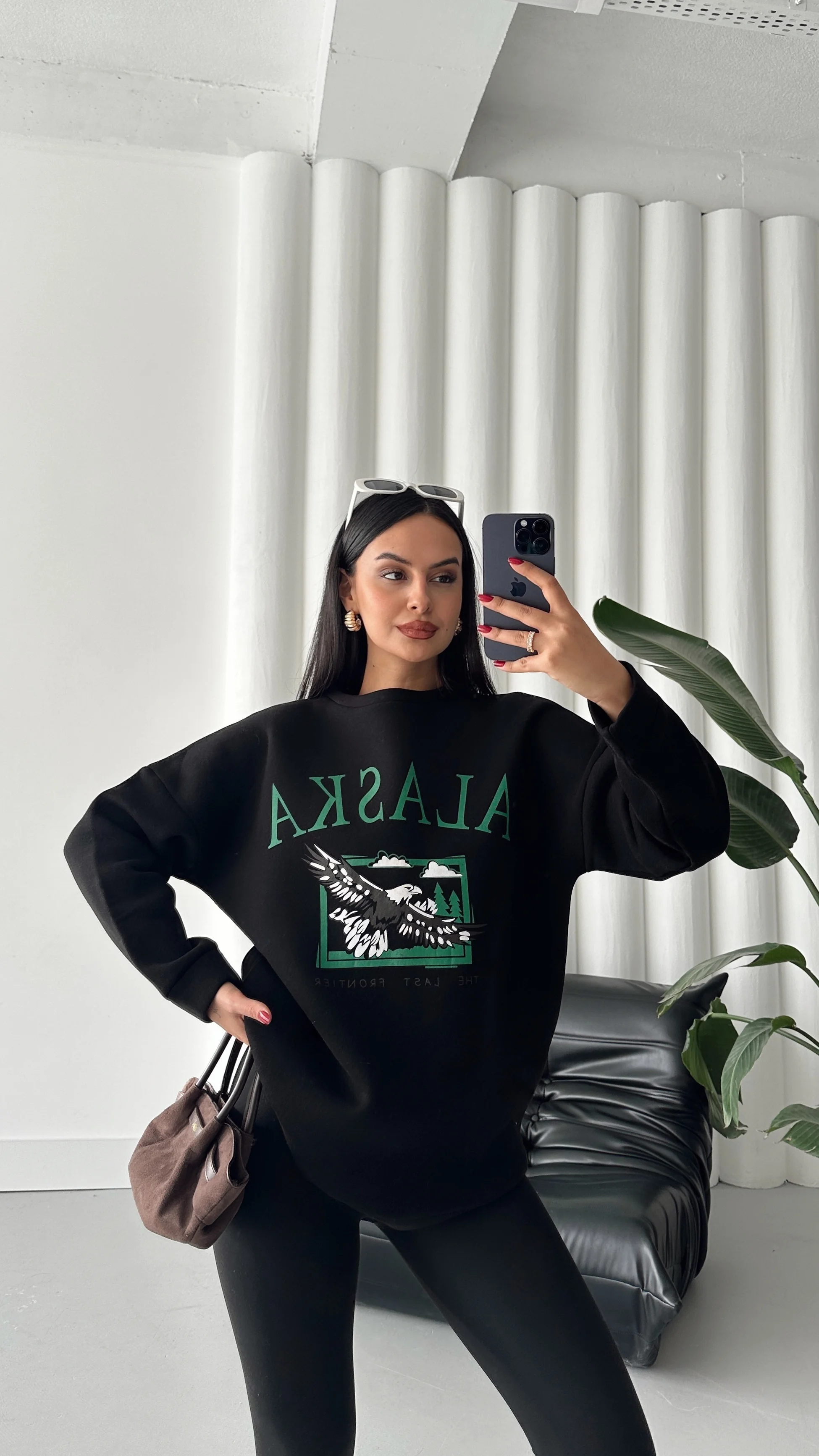 Alaska Üç İplik Şardonlu Oversize Sweat Siyah - Siyah (MYD4530.SW.01_Siyah)