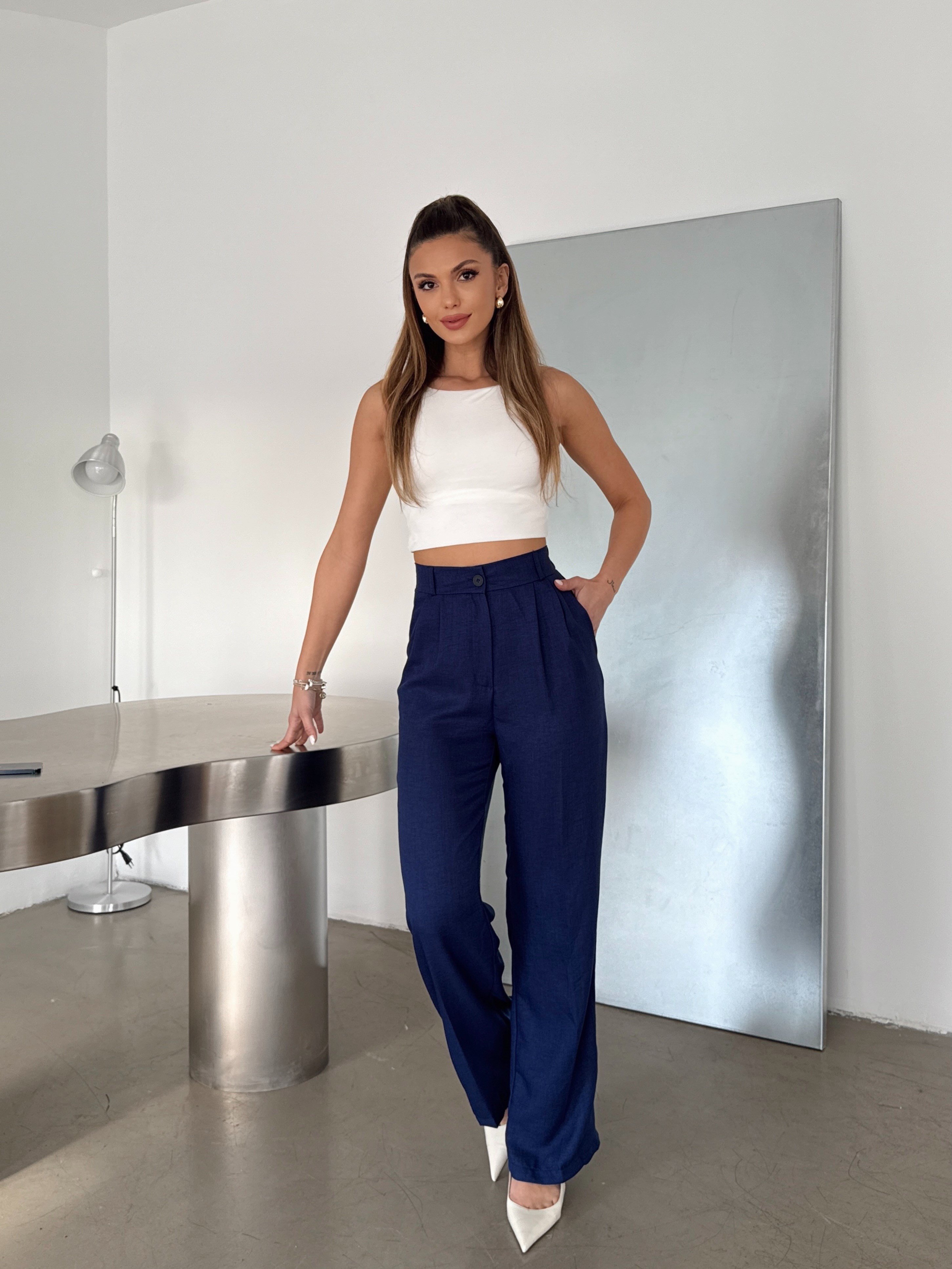 Arka Beli Lastikli Keten Pantolon - Lacivert (MD4478_Lacivert)