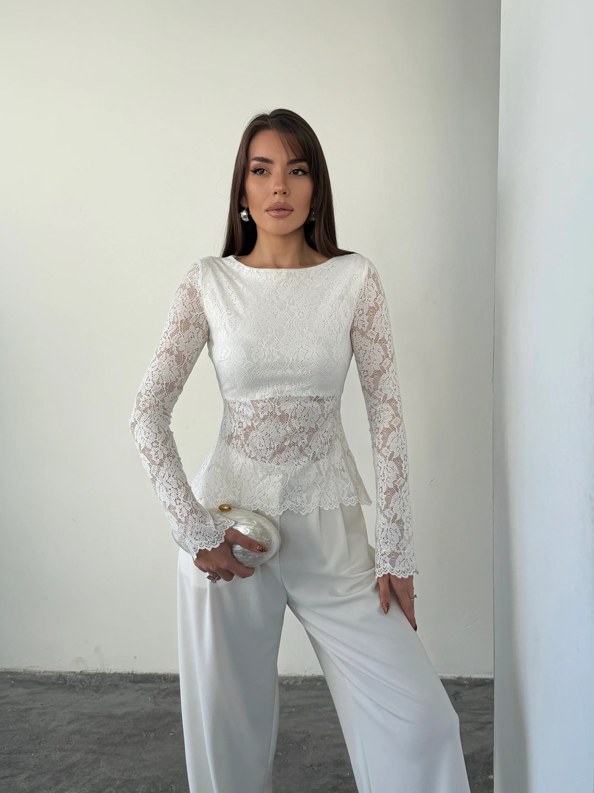 Arkası Bağlamalı Dantel Bluz - Ekru (MD4297_Ekru)