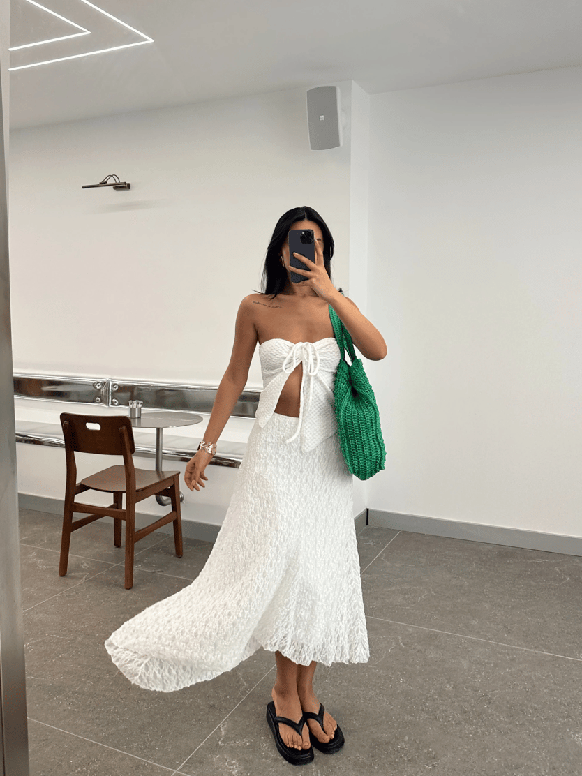 Asimetrik Dantel Uzun Etek - Beyaz (MD3760_Beyaz)