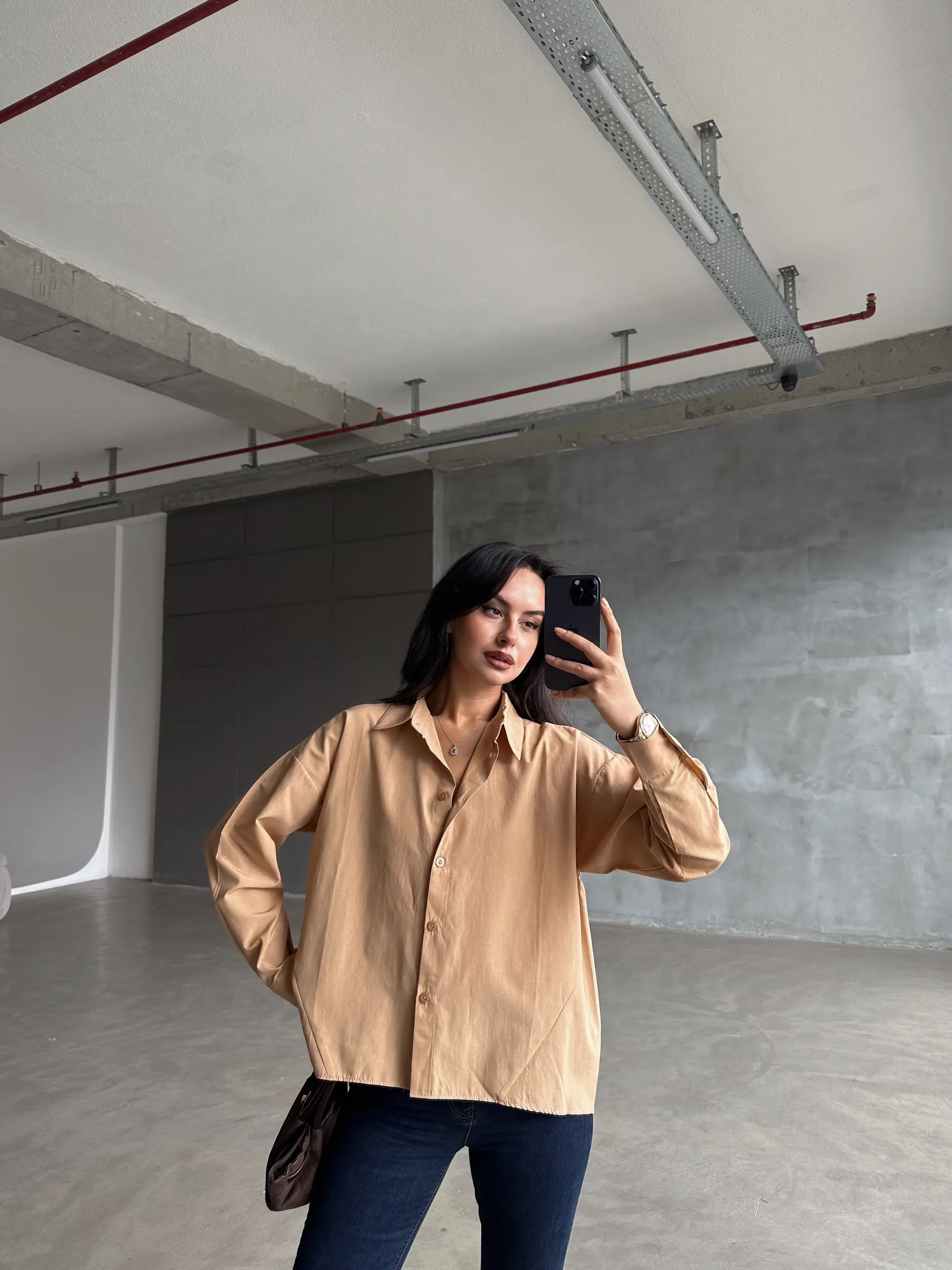 Asimetrik Dikiş Detay Gömlek Siyah - Siyah Asimetrik Dikiş Detay Gömlek Kahverengi - Kahverengi