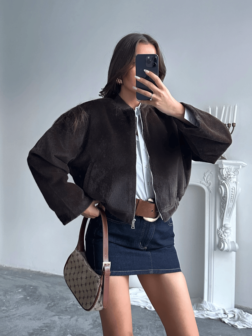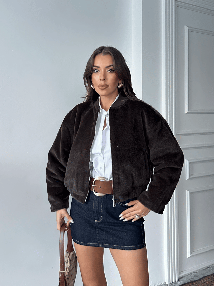 Astarlı Peluş Ceket - Kahve (MD4100_Kahve)