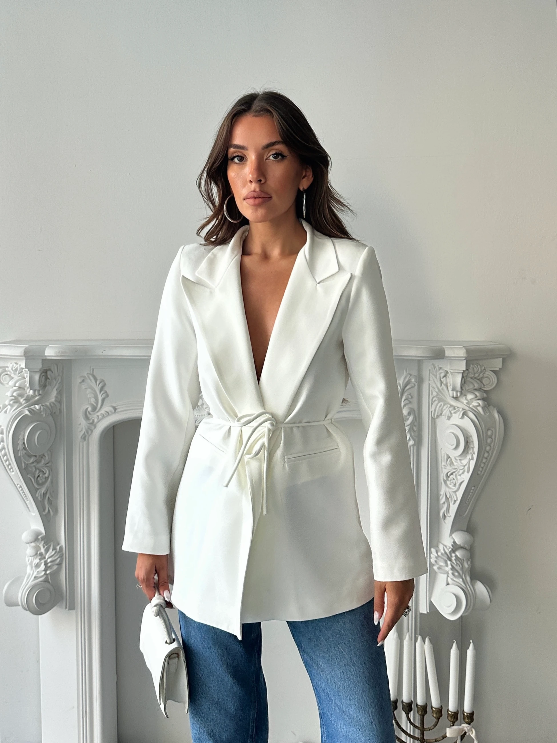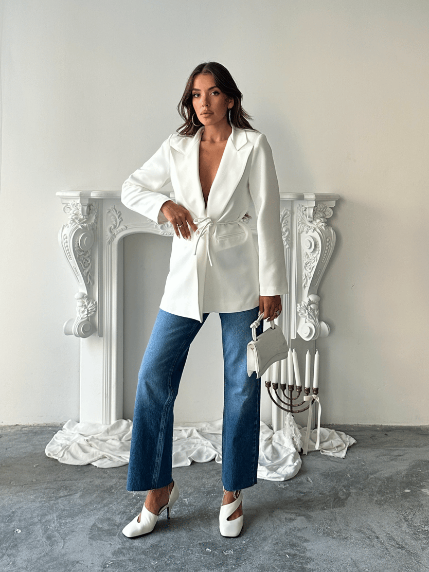 Bağlama Detay Ceket - Beyaz (MYD4121_Beyaz)