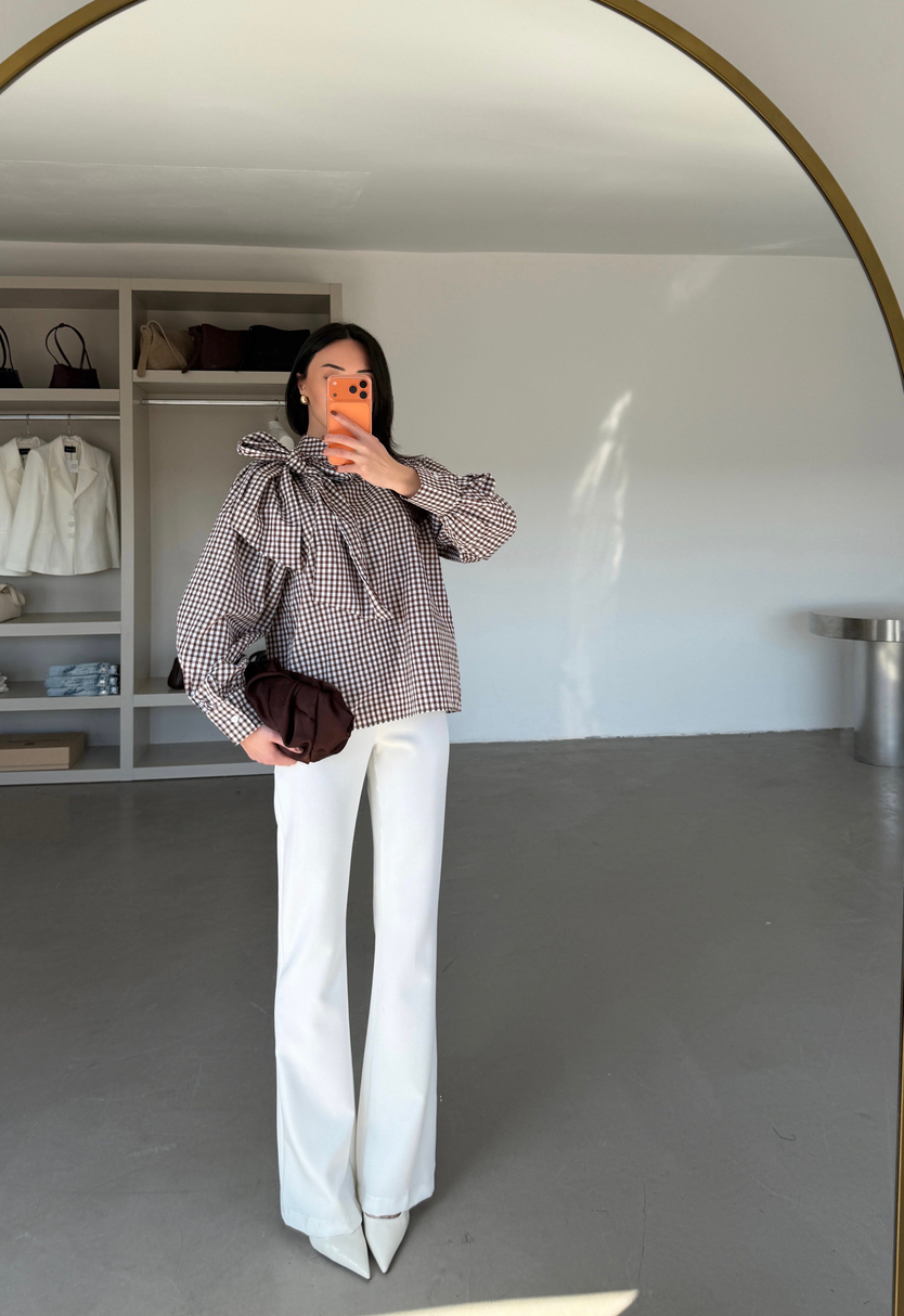 Bağlama Detaylı Poplin Bluz - Kahve (MD4405_Kahve)