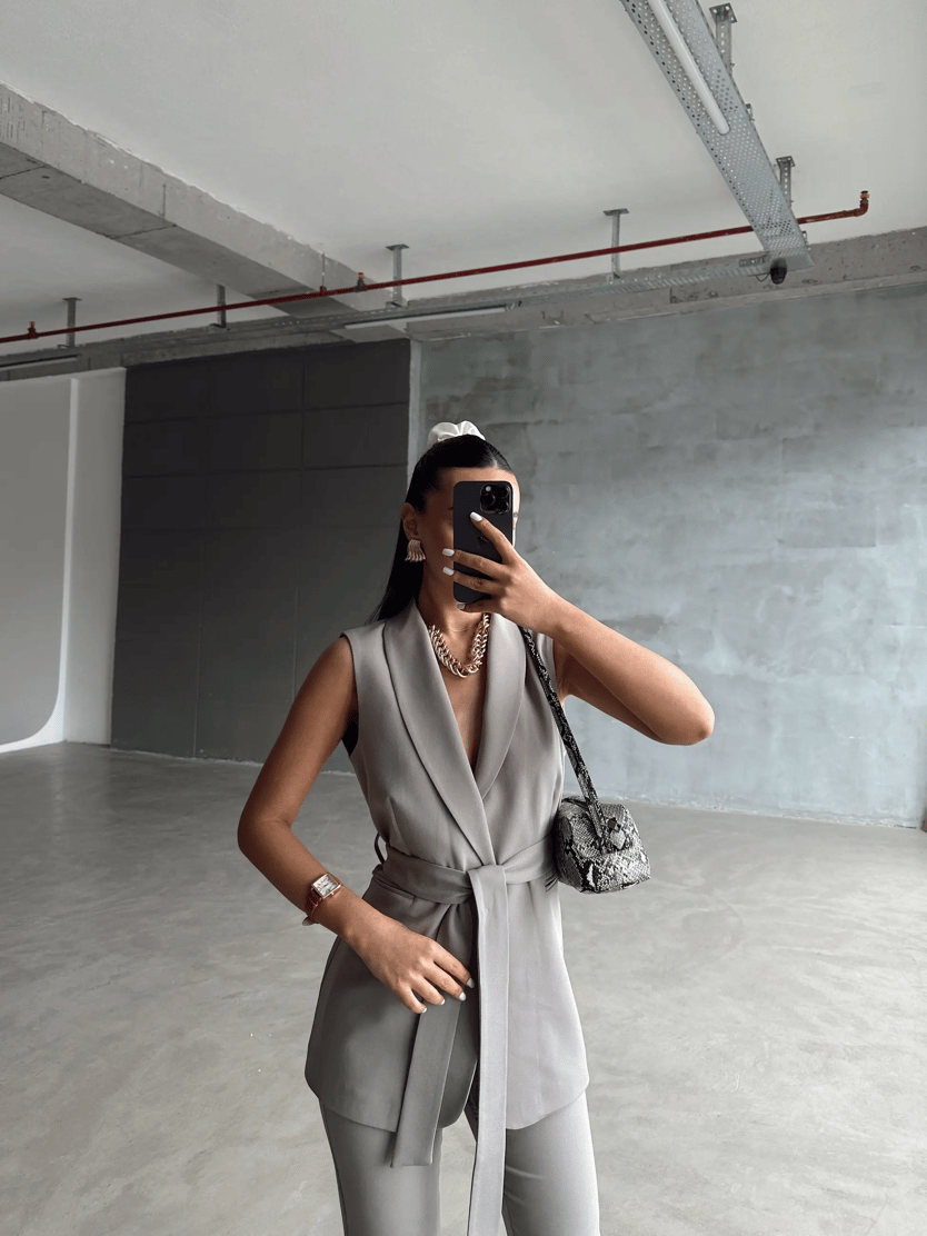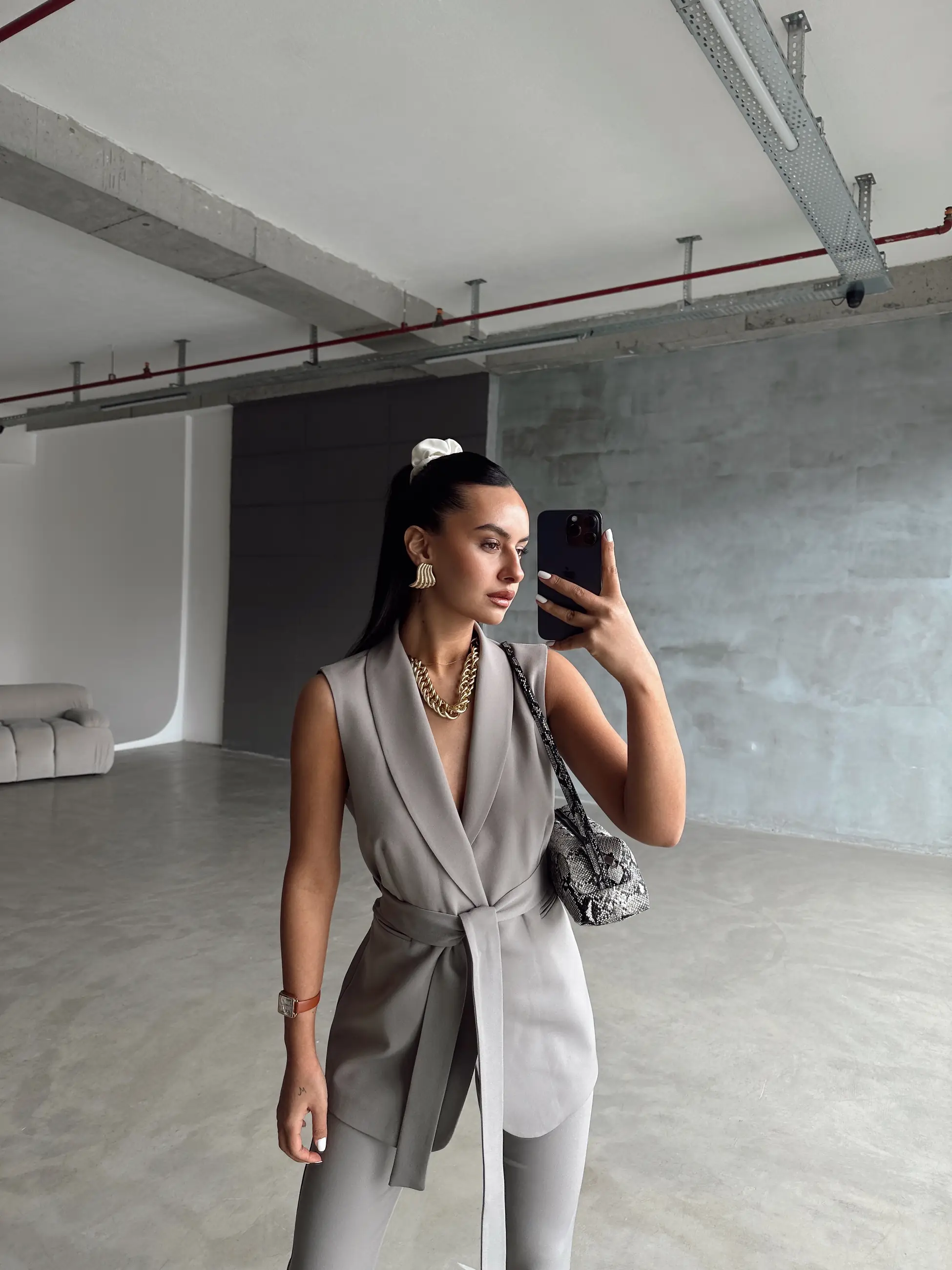 Bağlamalı Blazer Yelek - Gri (MYD7307_Gri)