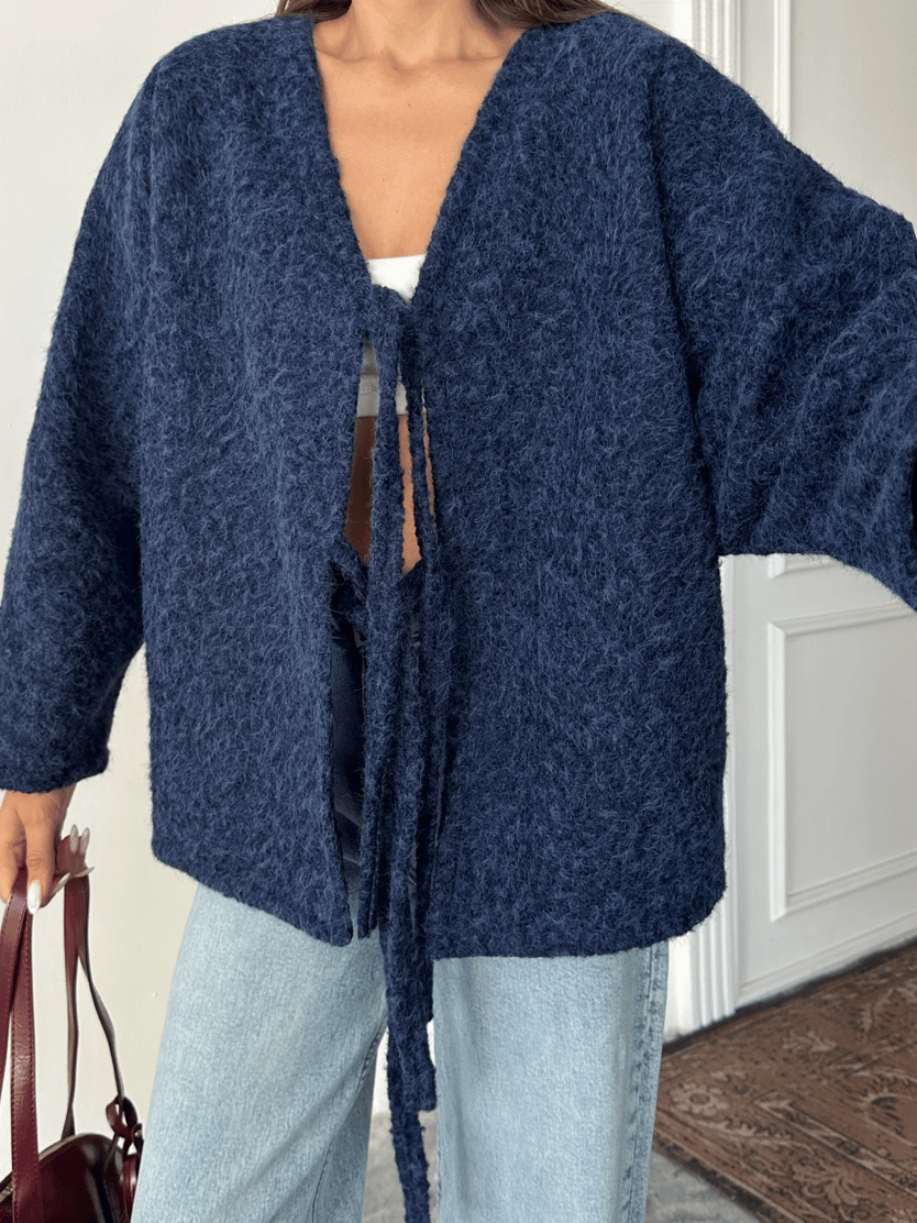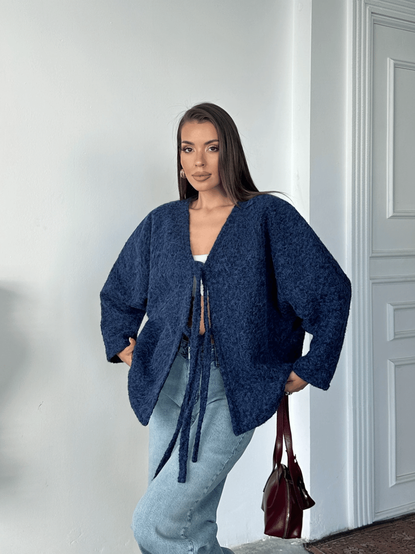 Bağlamalı Kaşe Ceket - Lacivert (MD4093_Lacivert)