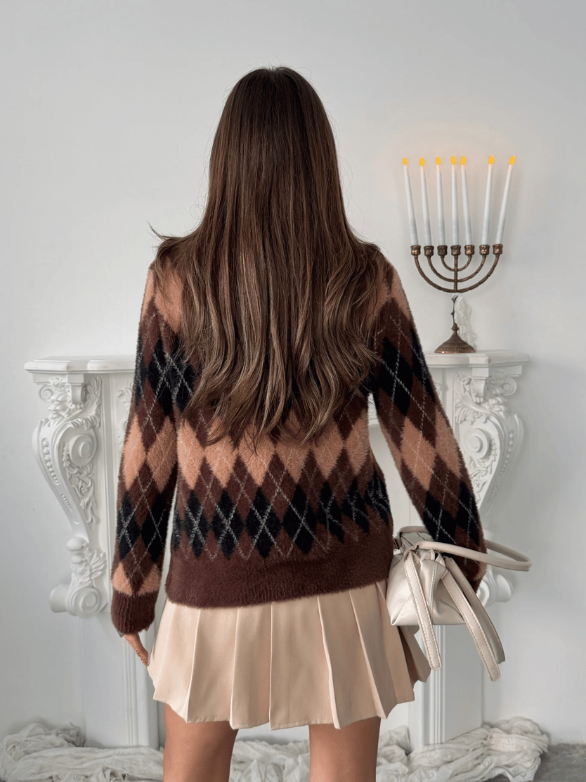 Baklava Desenli Yumoş Hırka - Kahve (MD4173_Kahve)
