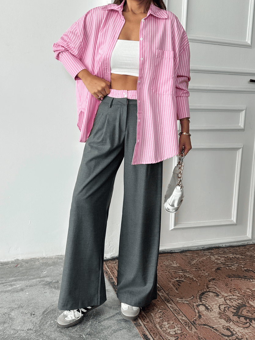Bel Çizgi Detay Gömlekli Takım - Bordo Bel Çizgi Detay Gömlekli Takım - Siyah Bel Çizgi Detay Gömlekli Takım - Vizon