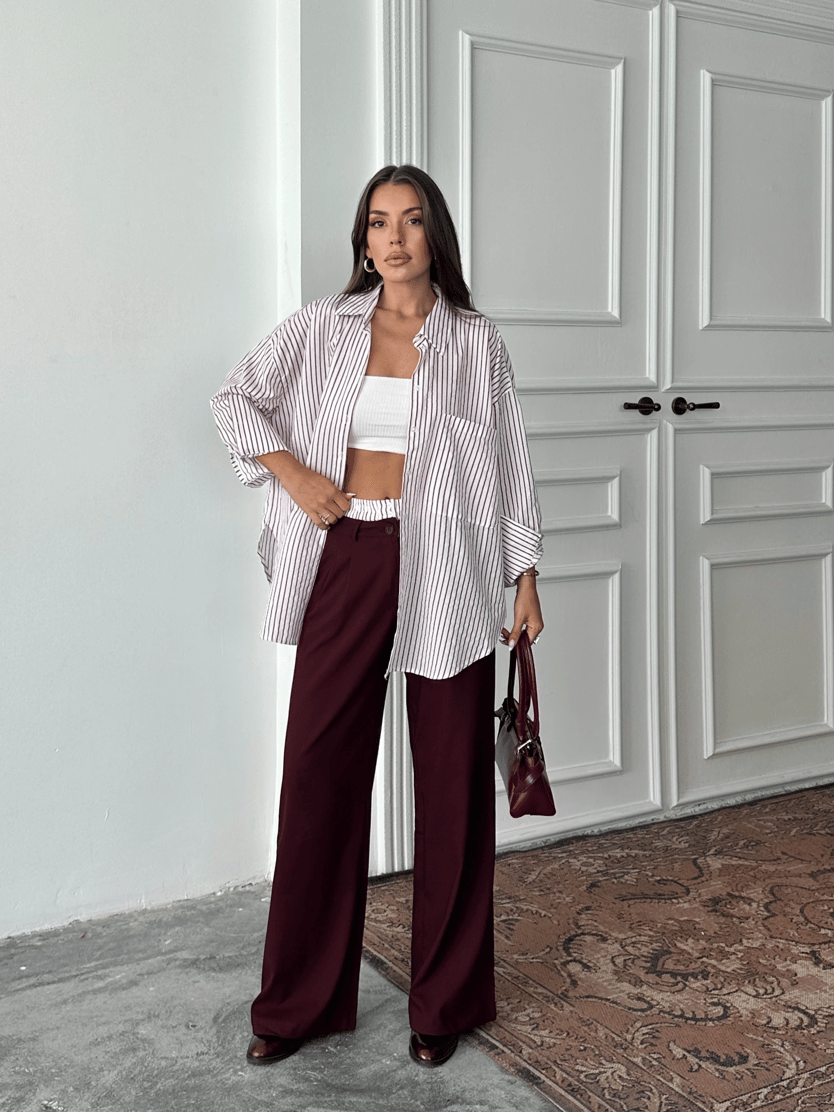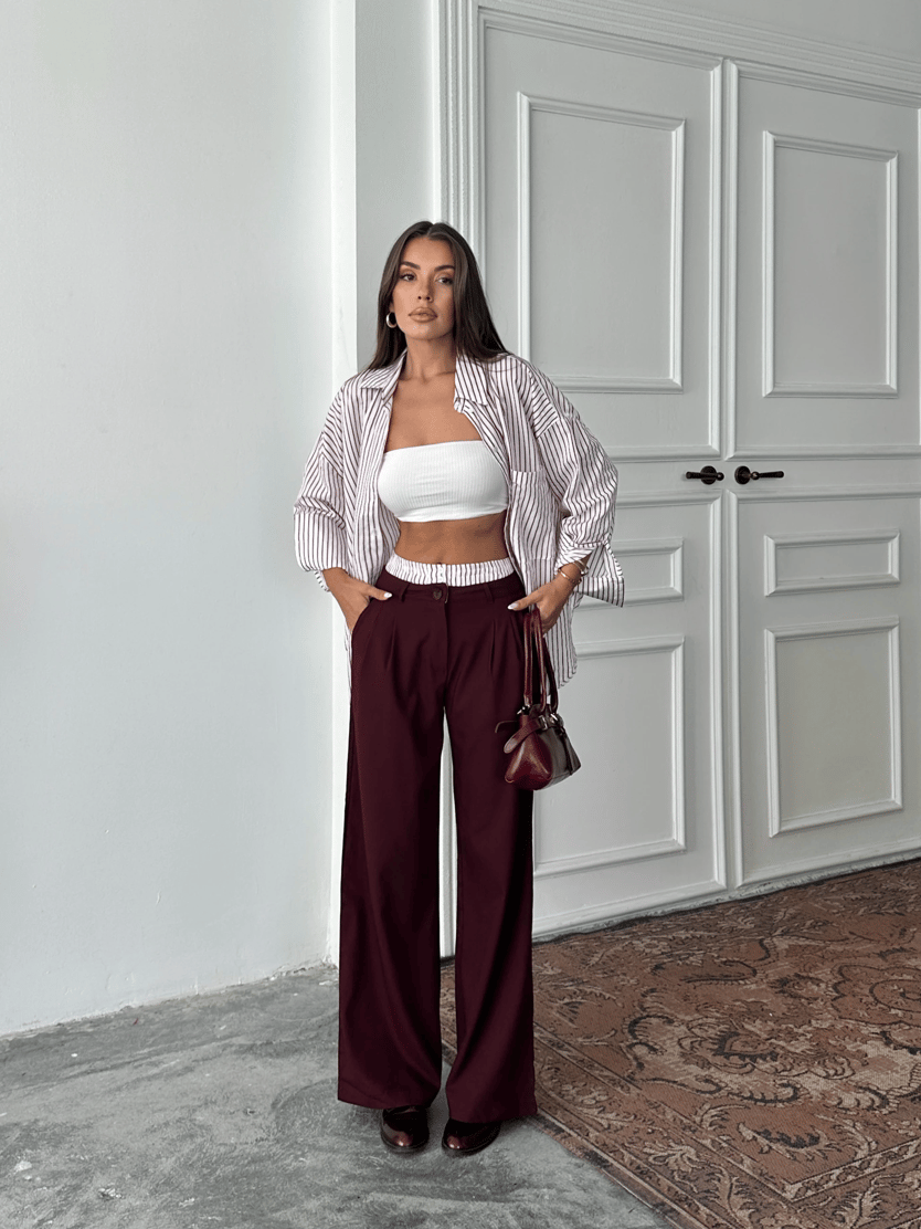 Bel Çizgi Detay Gömlekli Takım - Bordo (MYD7465_Bordo)