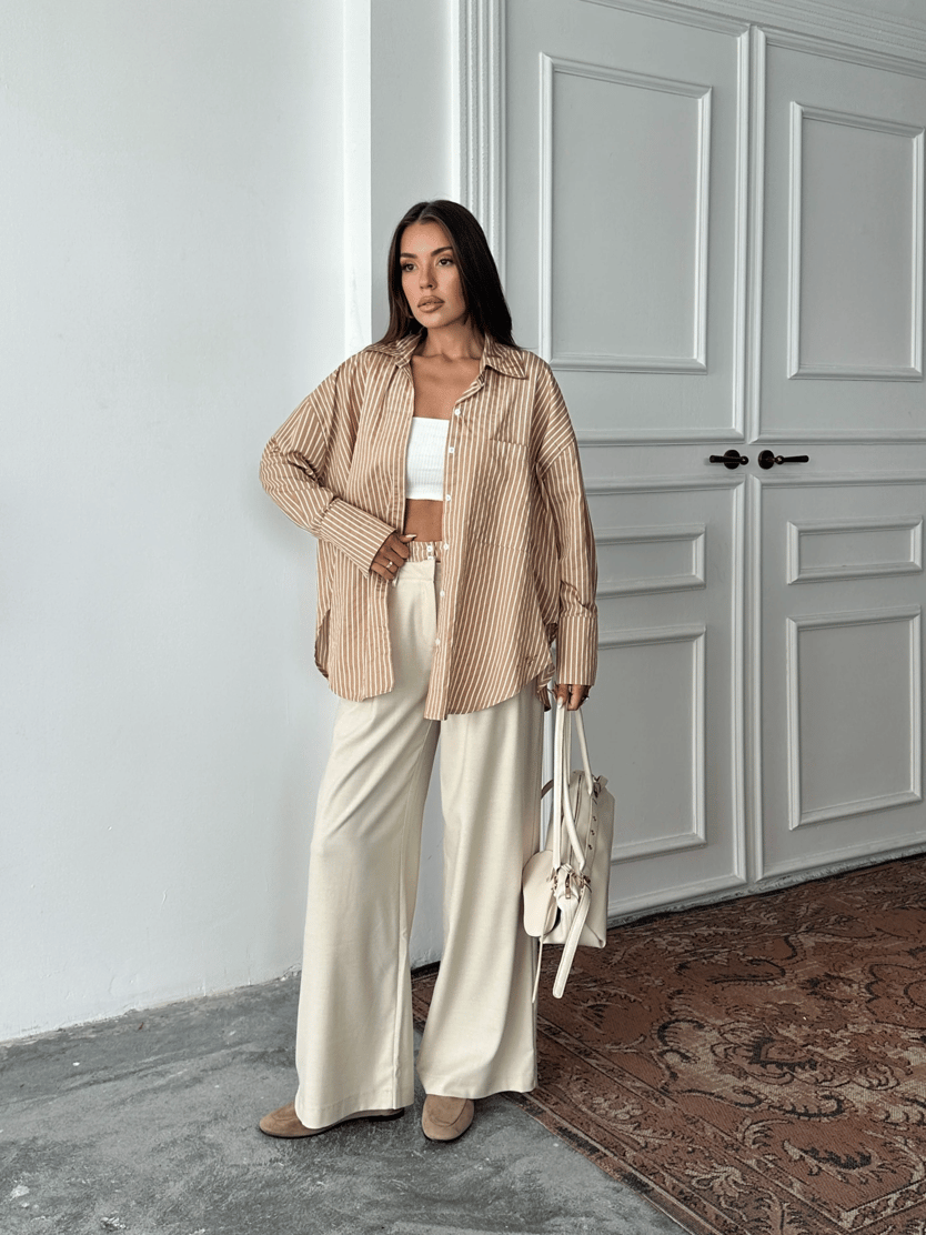 Bel Çizgi Detay Gömlekli Takım - Vizon (MYD7465_Vizon)