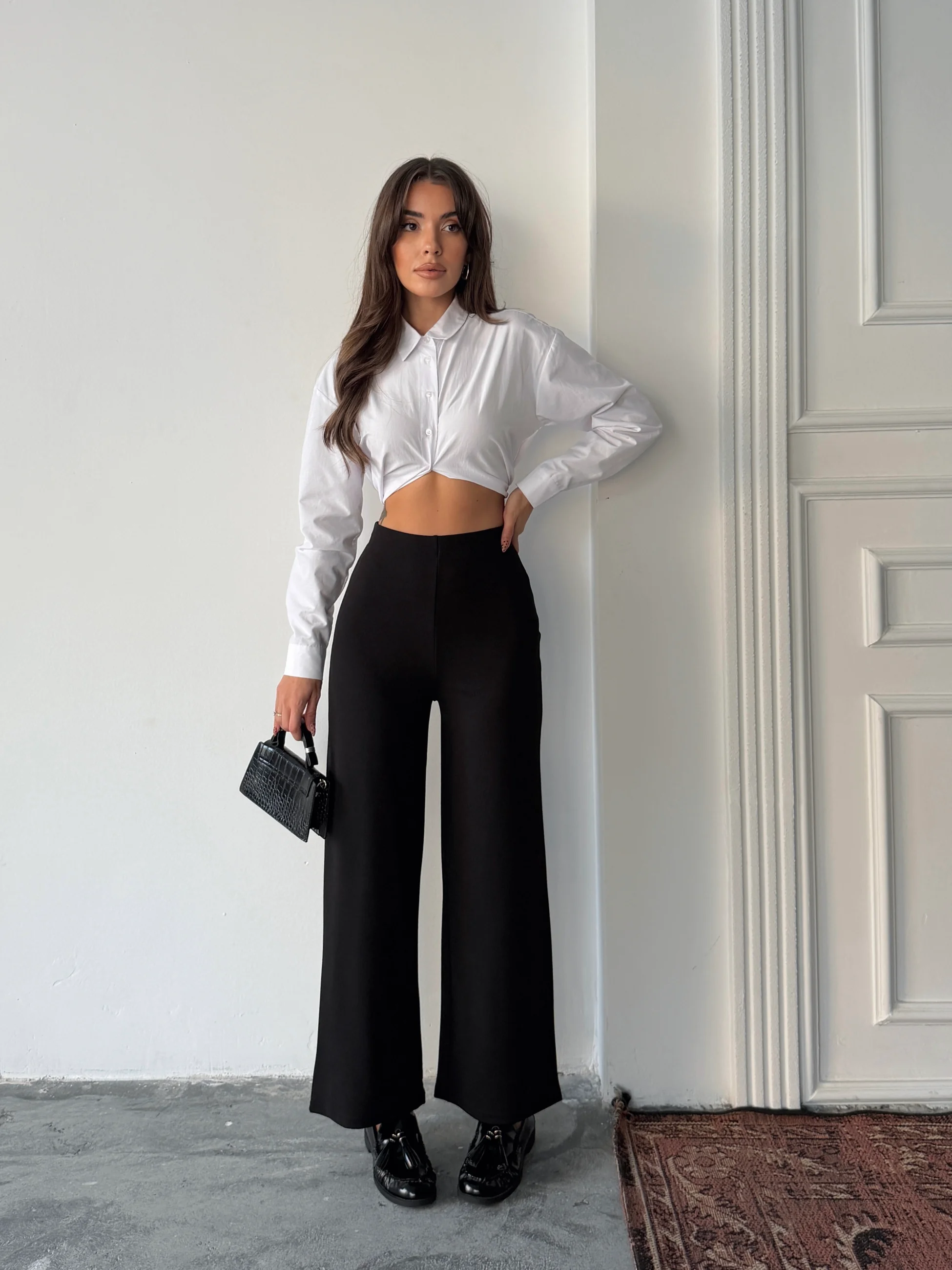 Bel İçten Lastik Kumaş Pantolon - Siyah (MD4167_Siyah)