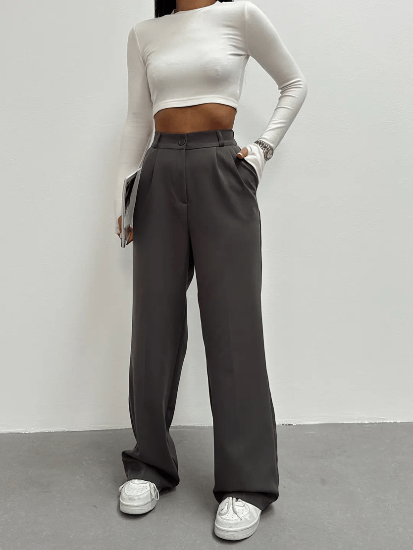 Bel Lastik Palazzo Pantolon - Füme (MD3487_Füme)