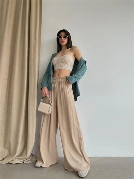 Bel Lastik Tiril Palazzo Pantolon Bej - Bej (MYD7234.PN.01_Bej)