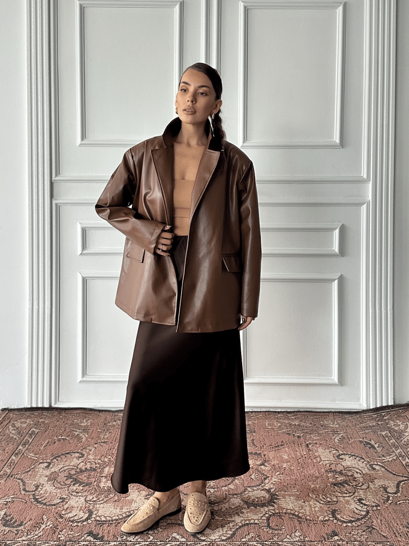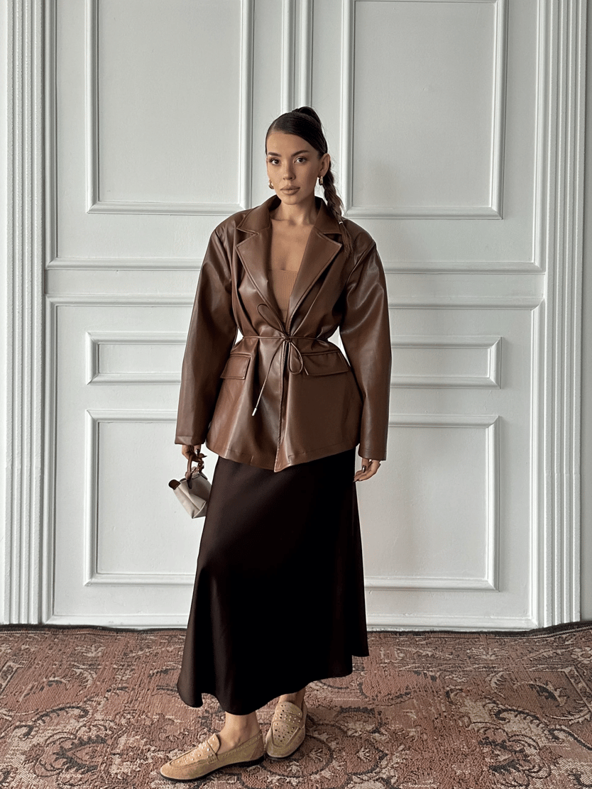 Belden Bağlamalı Deri Ceket - Kahve (MYD7502_Kahve)