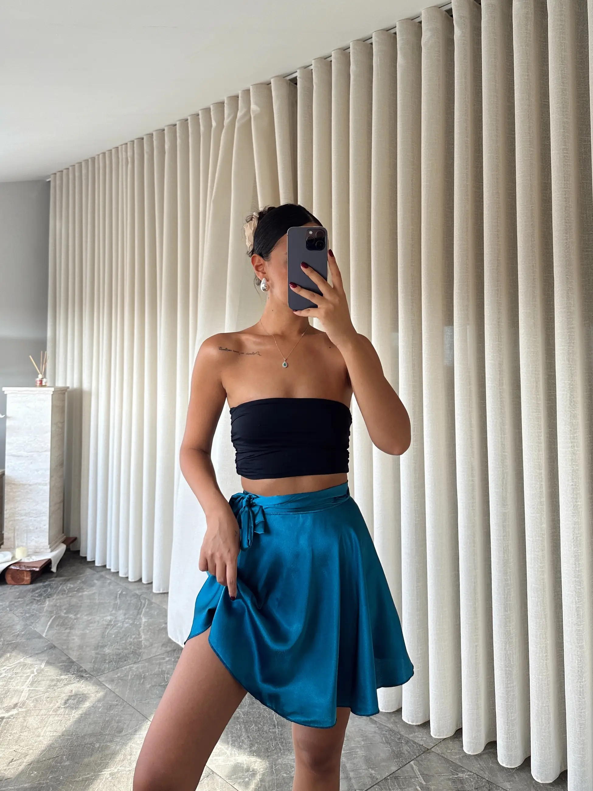 Belden Bağlamalı Saten Etek Petrol Mavisi - Petrol Mavisi (MYD6008.ET.01_Petrol Mavisi)