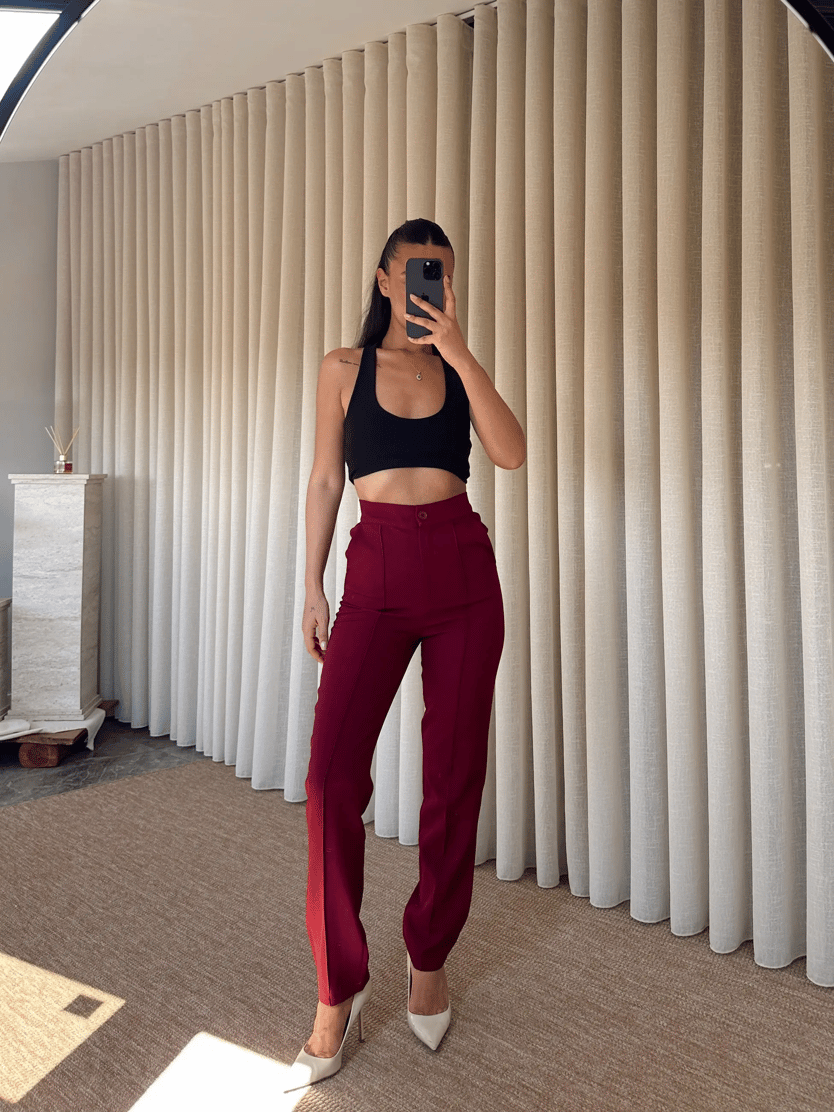 Beli Lastikli Çımalı Pantolon - Bordo (MYD7480_Bordo)