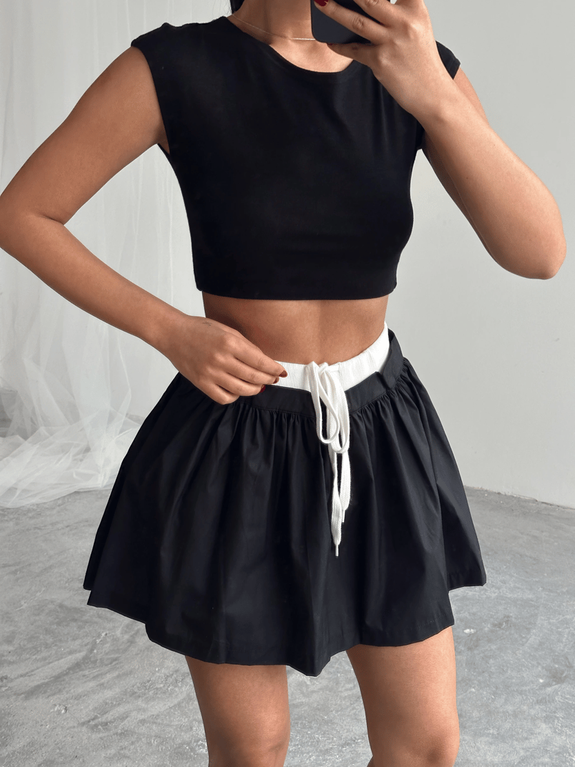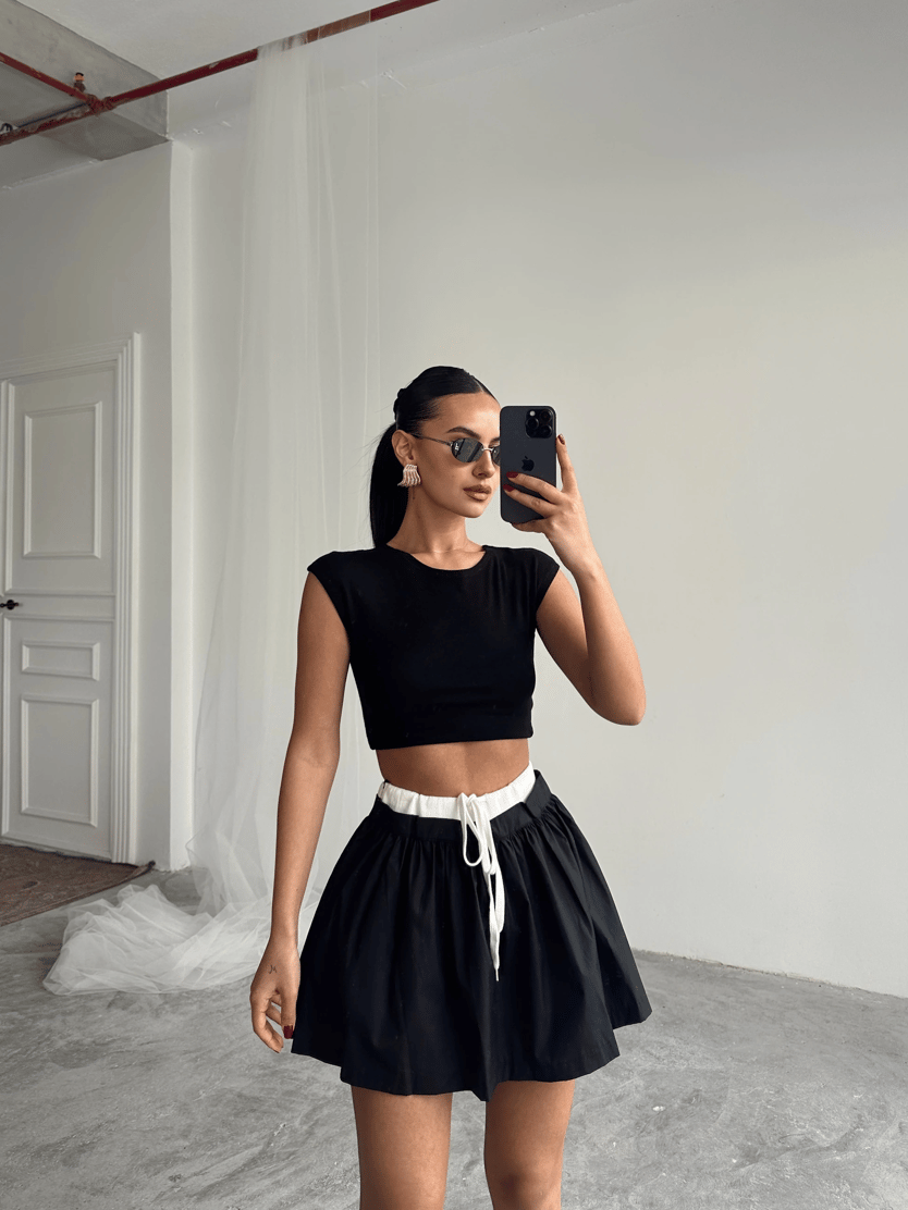 Beli Ribana Detay Mini Etek - Siyah (MYD7451_Siyah)