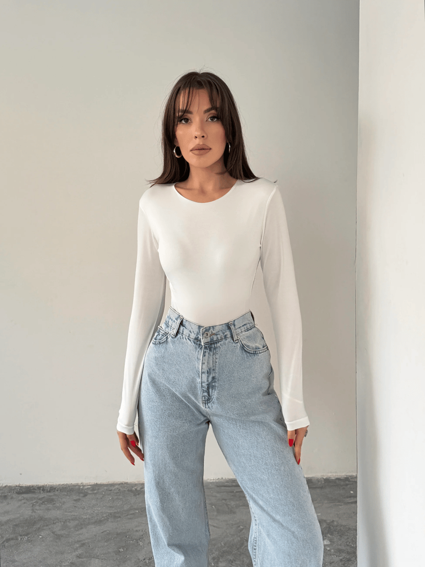 Bisiklet Yaka Bodysuit - Beyaz (MD4221_Beyaz)