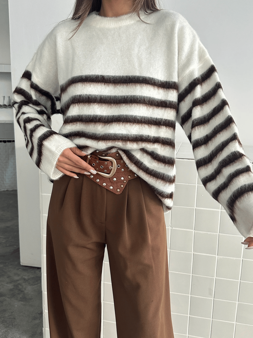 Bisiklet Yaka Çizgili Kazak - Kahve (MD4039_Kahve)