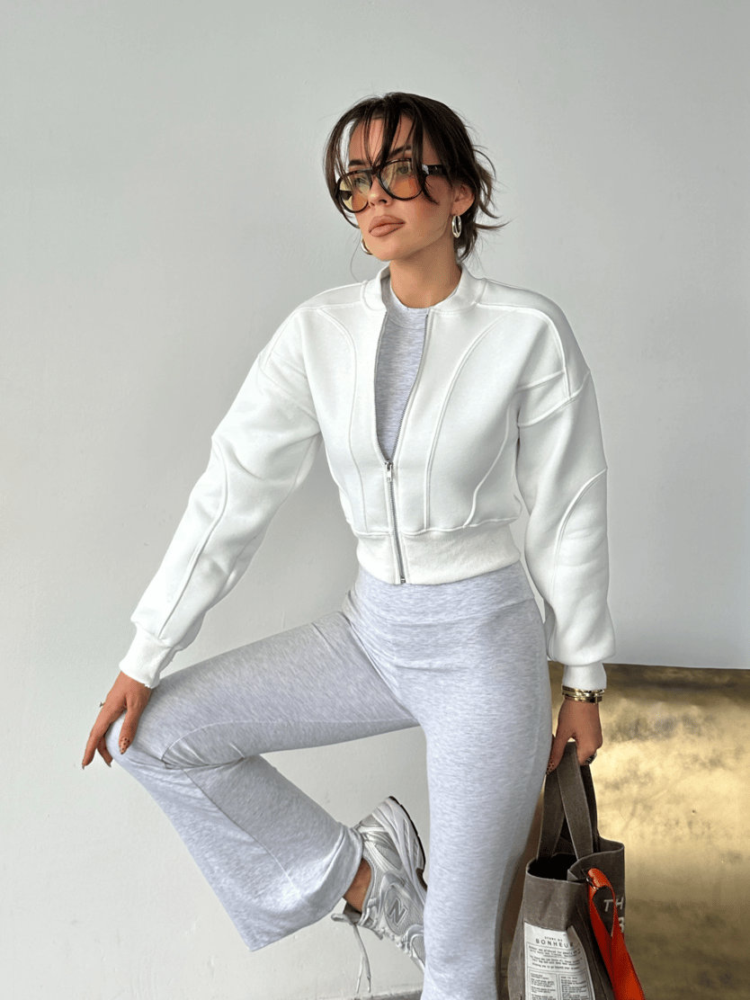 Bisiklet Yaka Fermuarlı Hırka - Beyaz (MD4139_Beyaz)