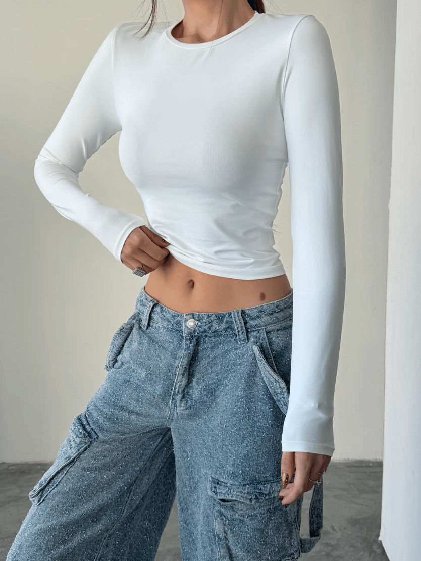 Bisiklet Yaka Micro Bluz - Beyaz (MD4289_Beyaz)