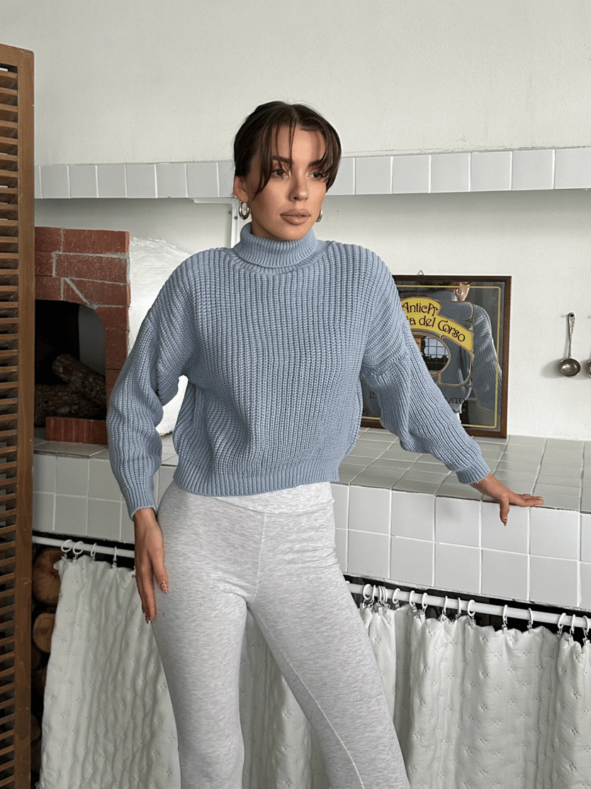 Boğazlı Crop Kazak - Mavi (MD4137_Mavi)
