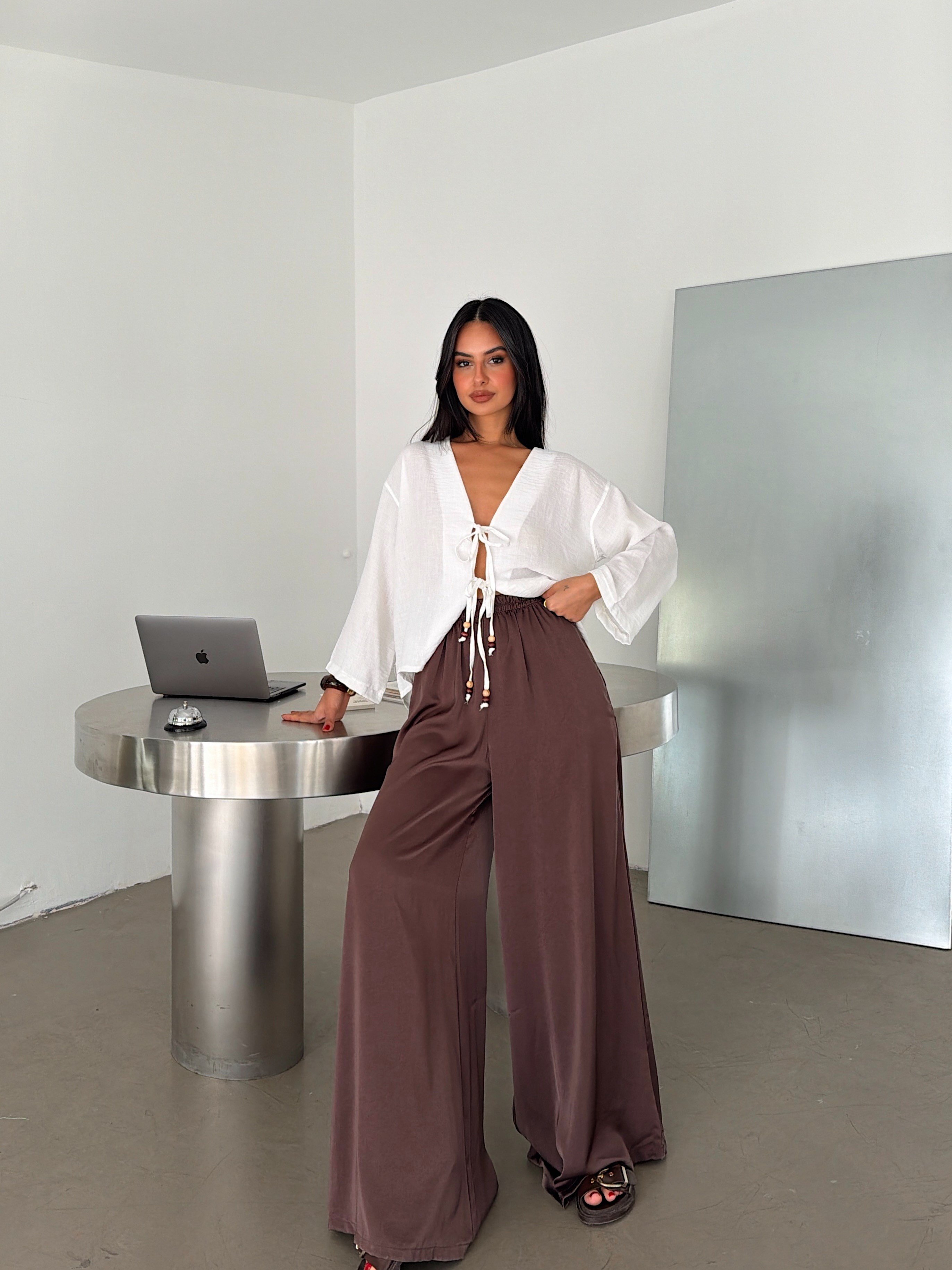 Bol Paça Saten Pantolon - Kahve (MD4525_Kahve)
