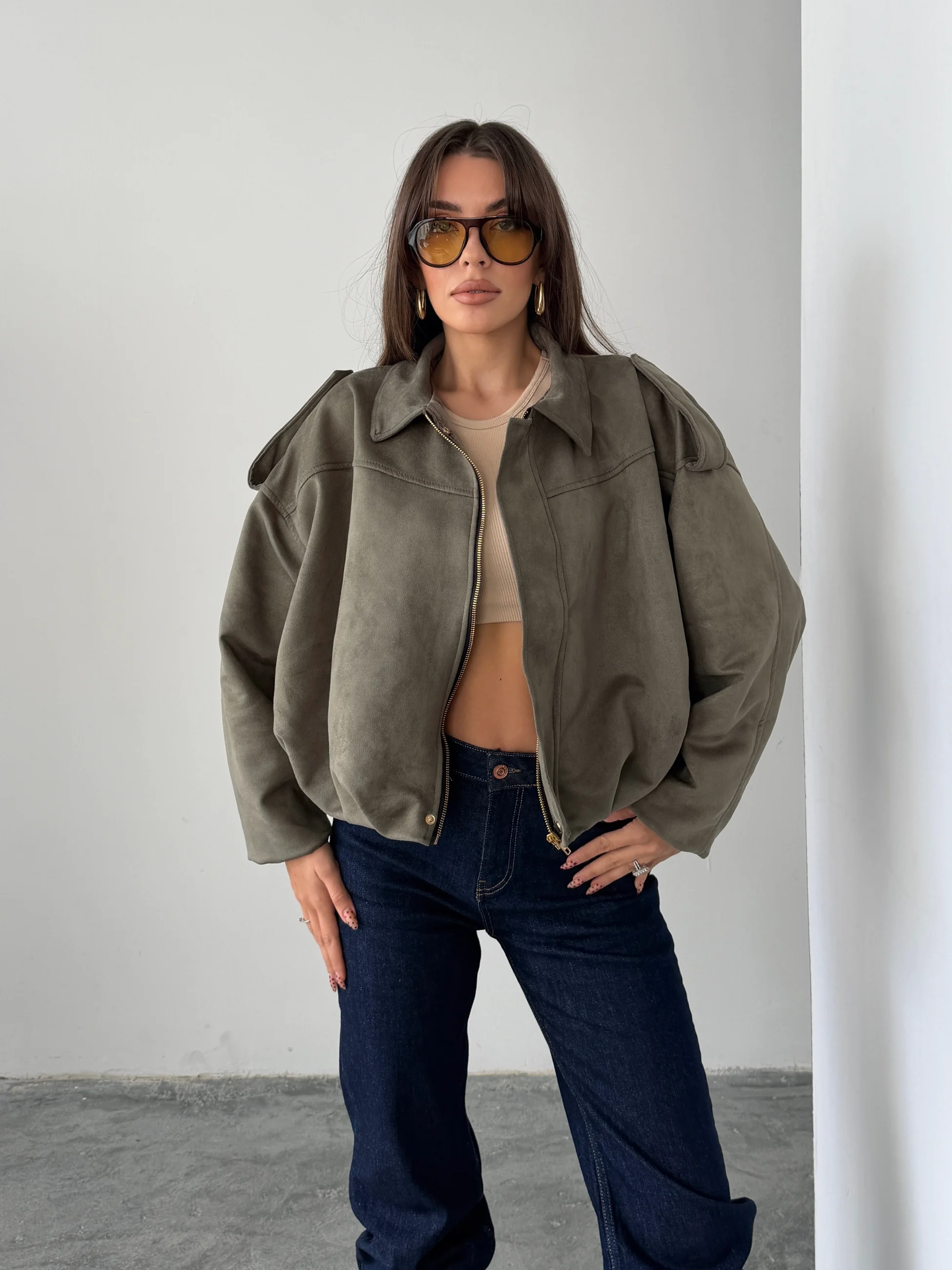 Bomber Süet Ceket - Haki (MD4060_Haki)