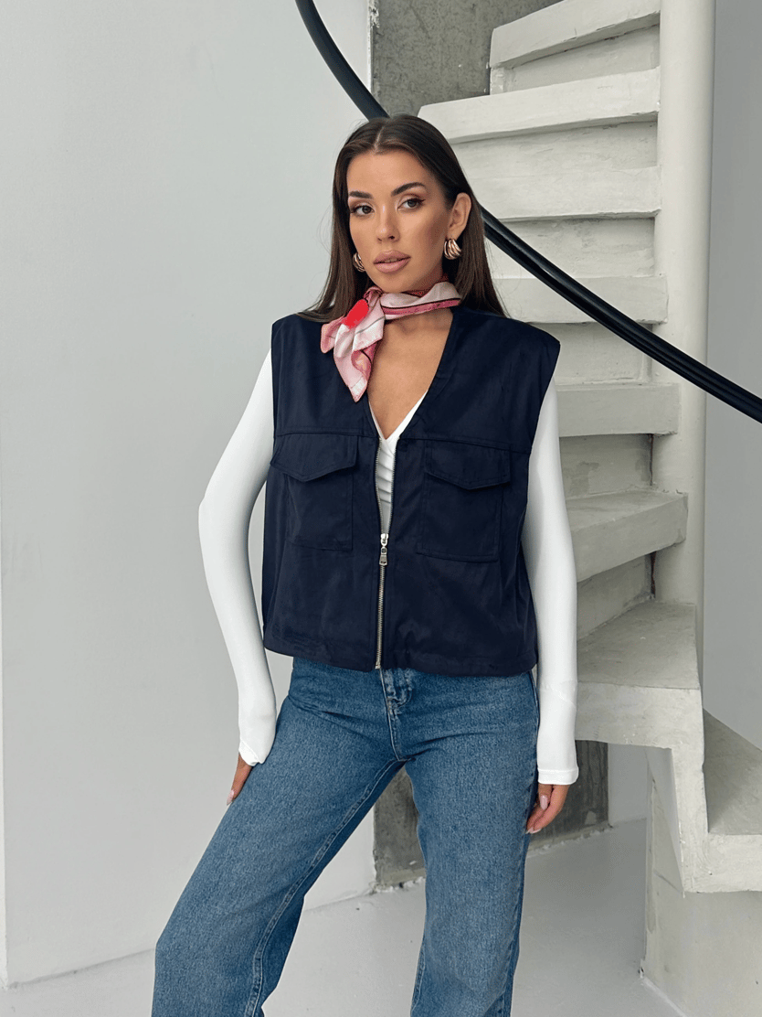 Cep Detay Nubuk Yelek - Lacivert (MD4033_Lacivert)
