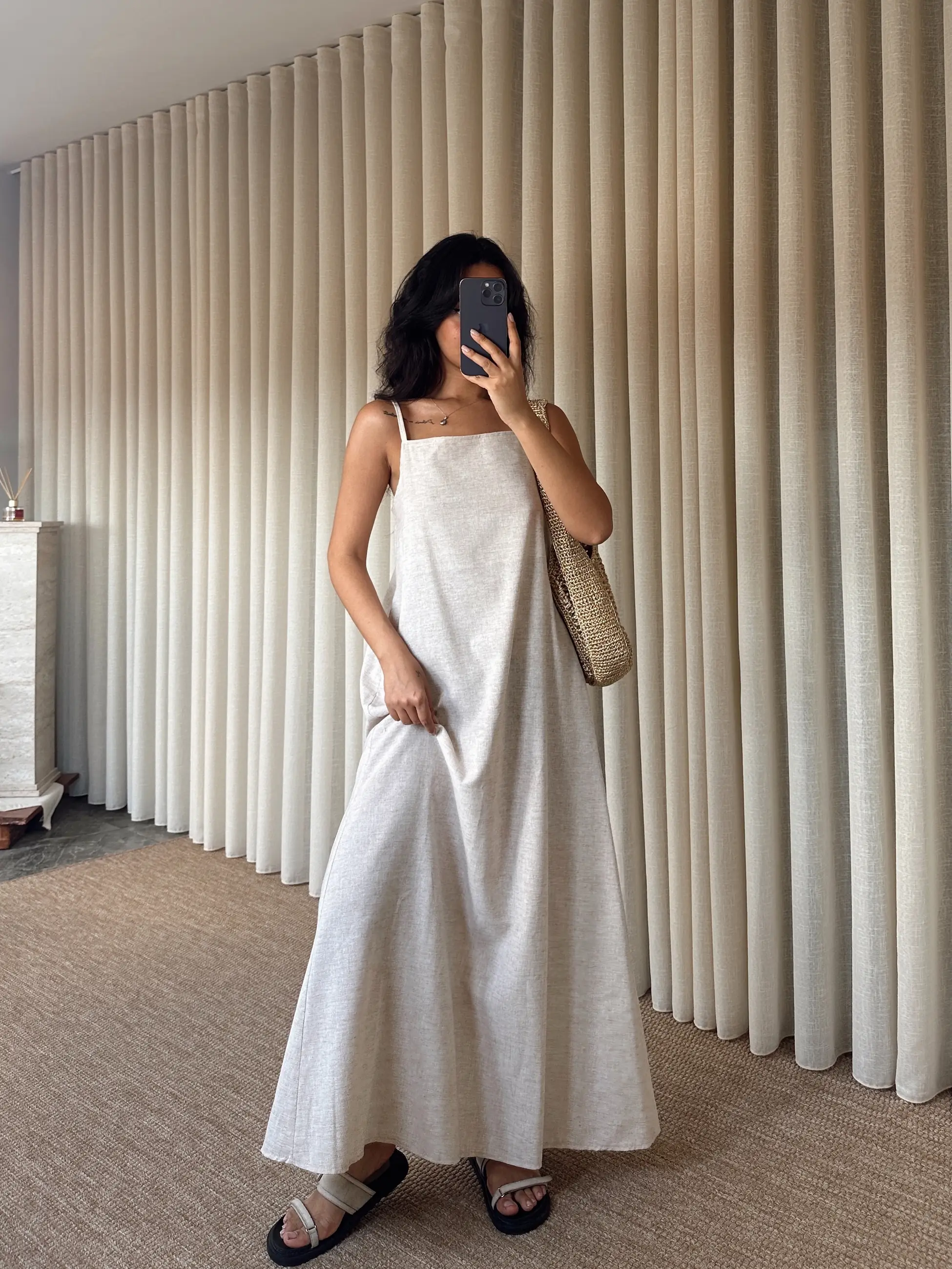 Cepli Keten Elbise - Krem (MD3922_Krem)