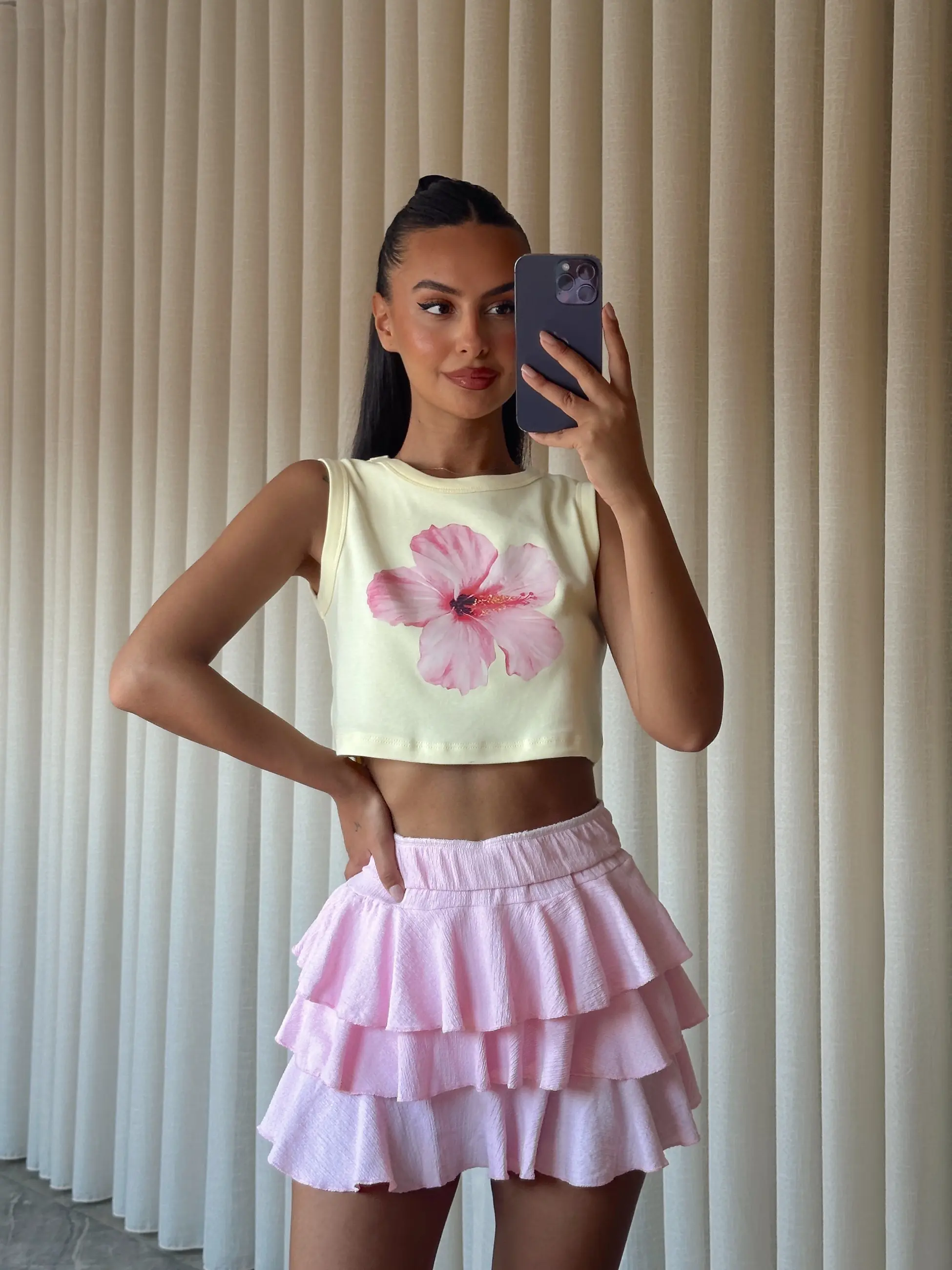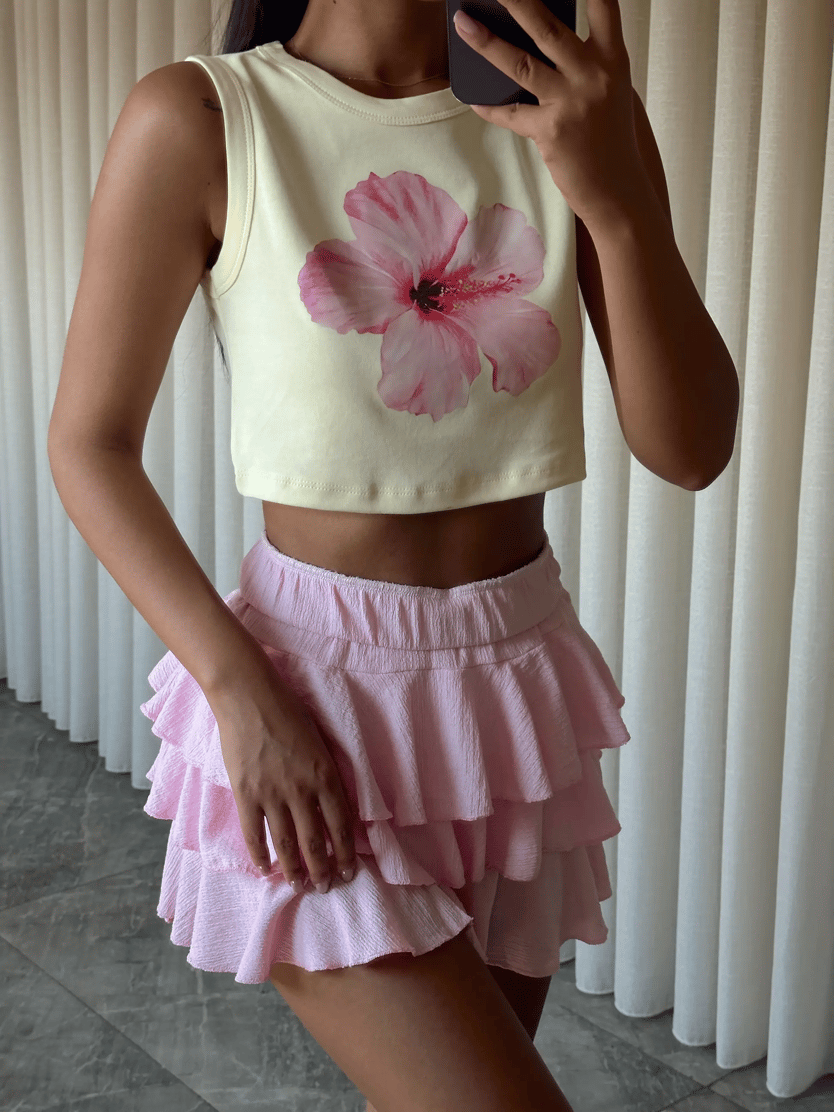Çiçek Baskılı Crop - Beyaz Çiçek Baskılı Crop - Pembe