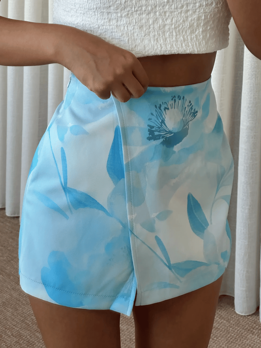 Çiçek Baskılı Mini Şort Etek - Mavi (MYD7489_Mavi)