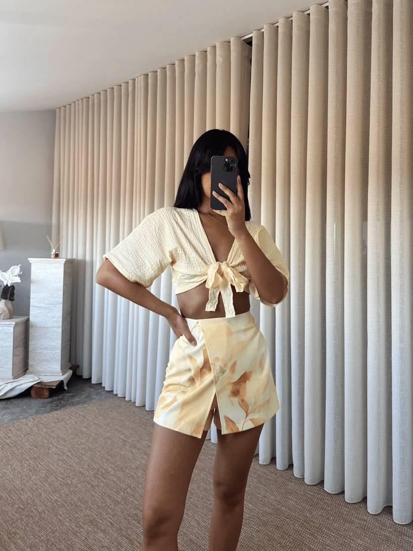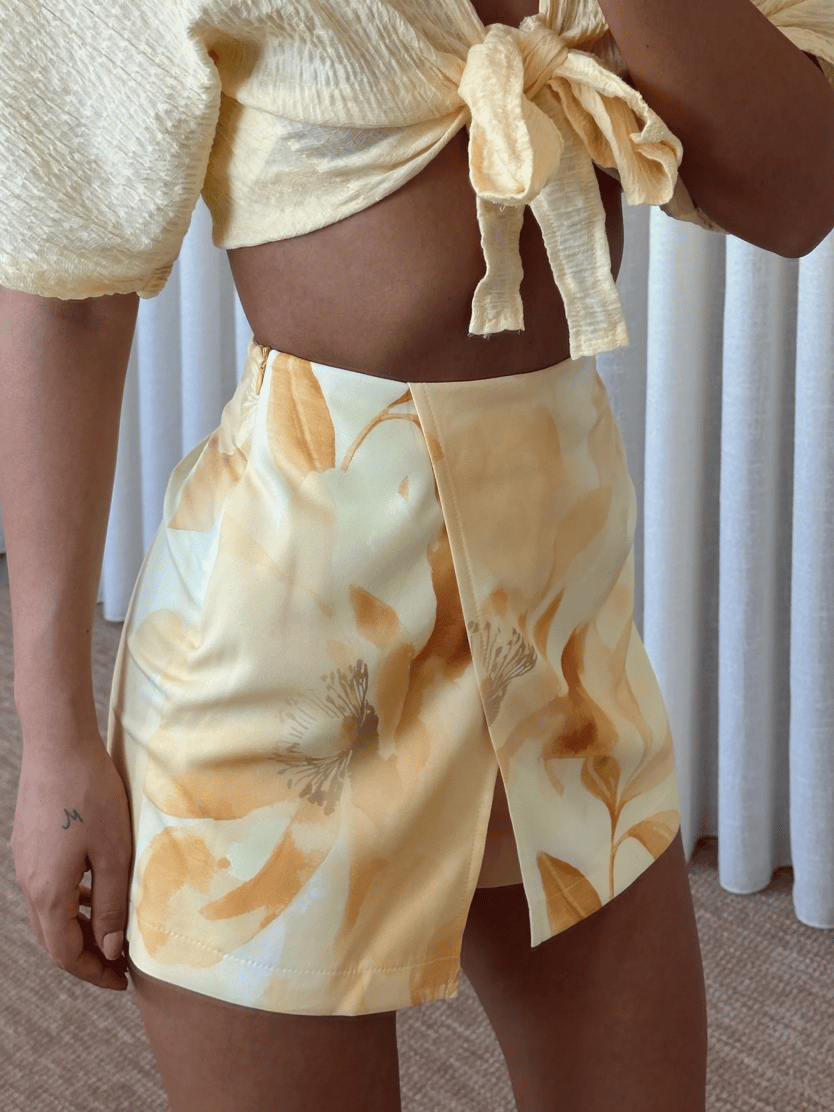 Çiçek Baskılı Mini Şort Etek - Sarı (MYD7489_Sarı)