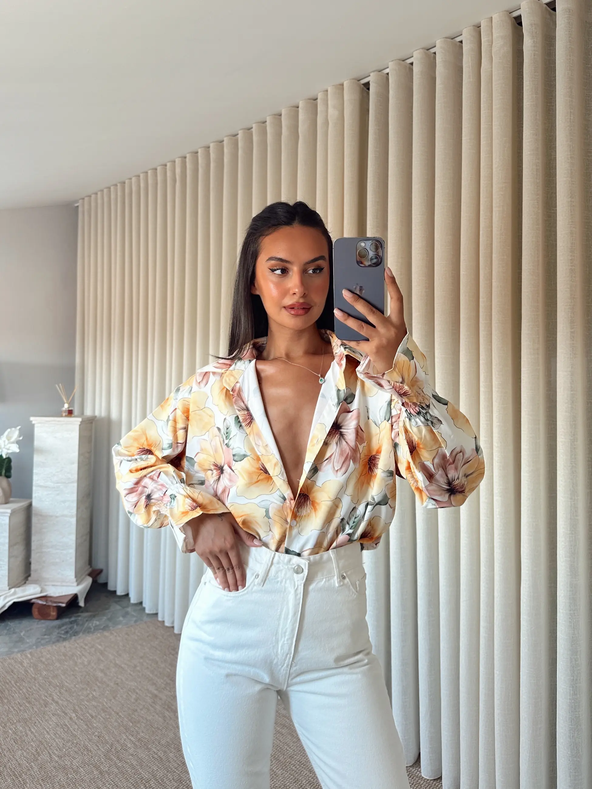 Çiçek Desenli Gömlek - Sarı (MYD7486_Sarı)