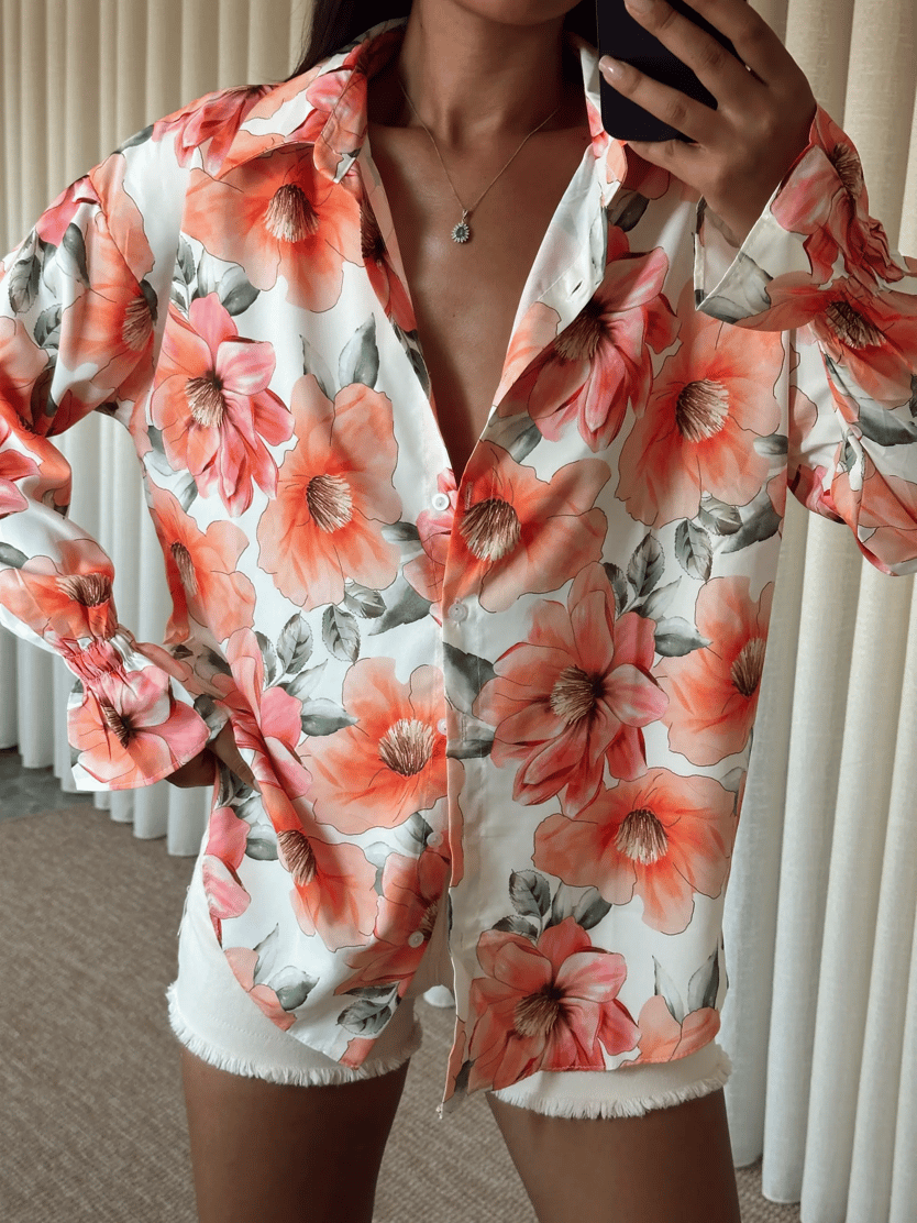 Çiçek Desenli Gömlek - Turuncu (MYD7486_Turuncu)