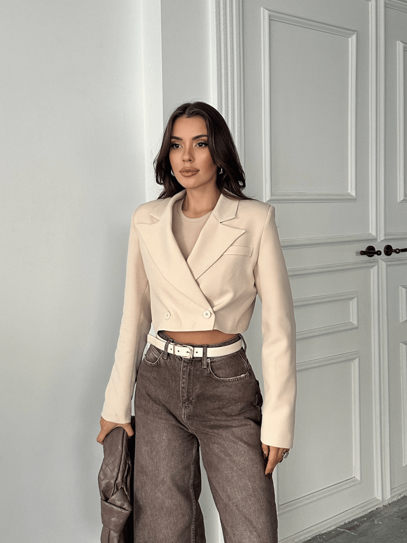 Çift Düğme Crop Blazer Ceket Bej - Bej (MYD7365.CK.01_Bej)