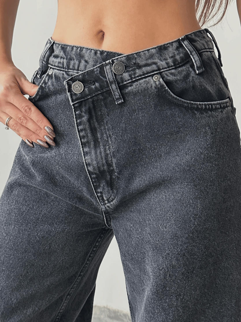 Çift Düğmeli Eskitme Palazzo Jean - Siyah (MD4127_Siyah)