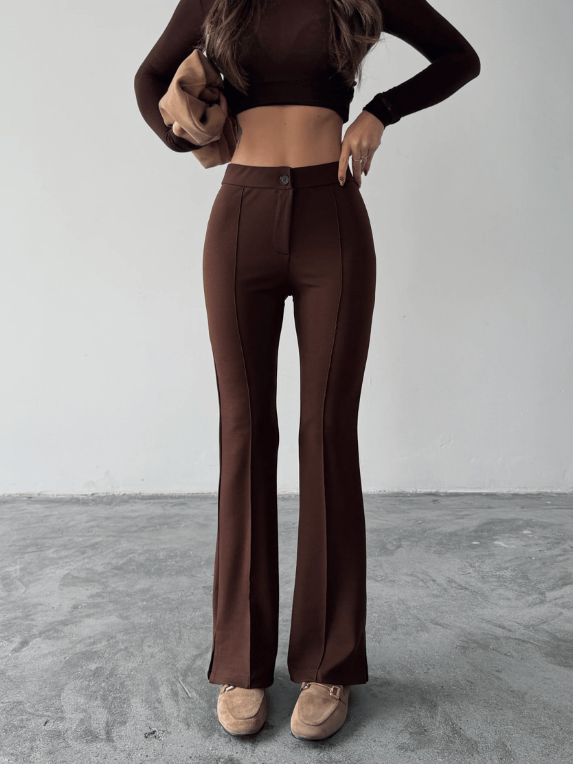 Çimalı Yırtmaç Pantolon - Kahve (MD4274_Kahve)