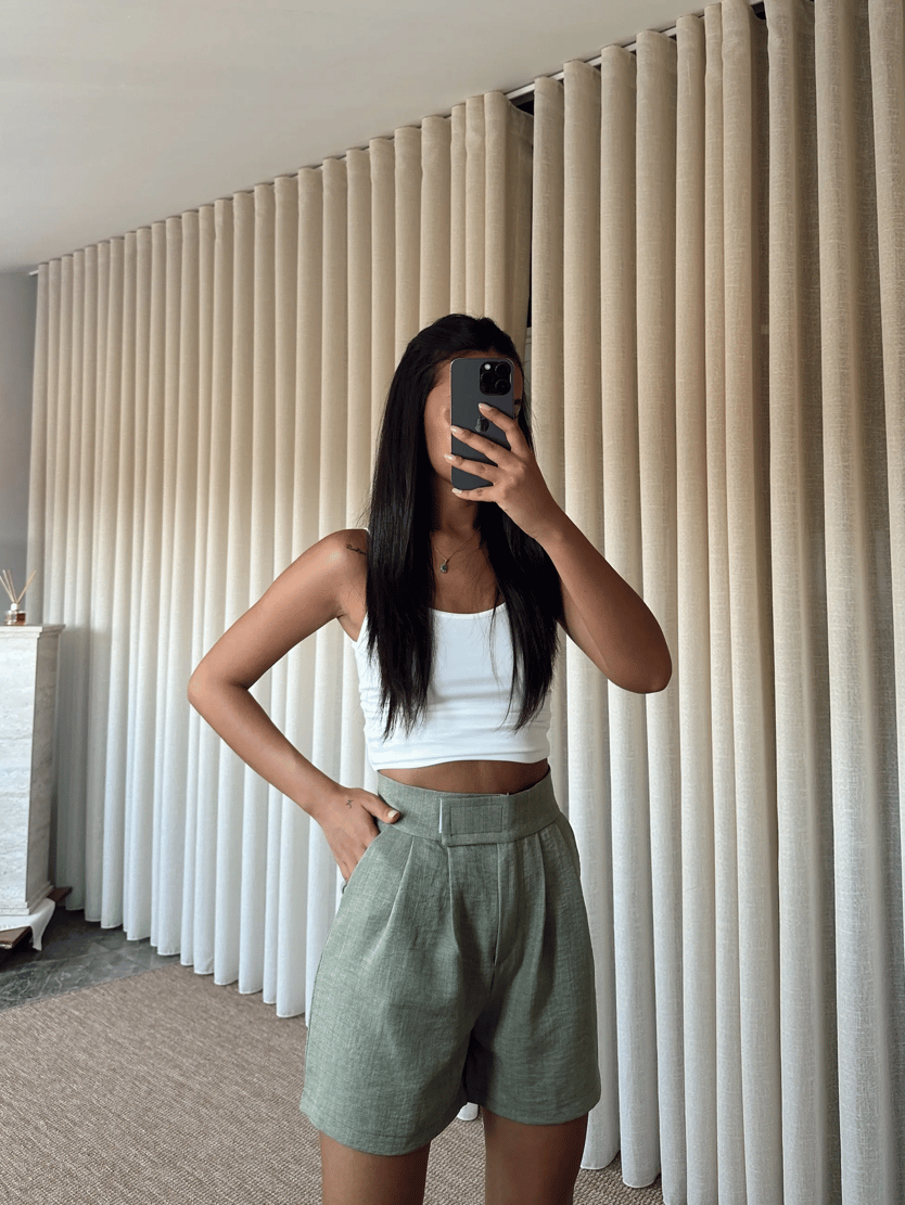 Cırtlı Keten Şort - Haki (MD3913_Haki)