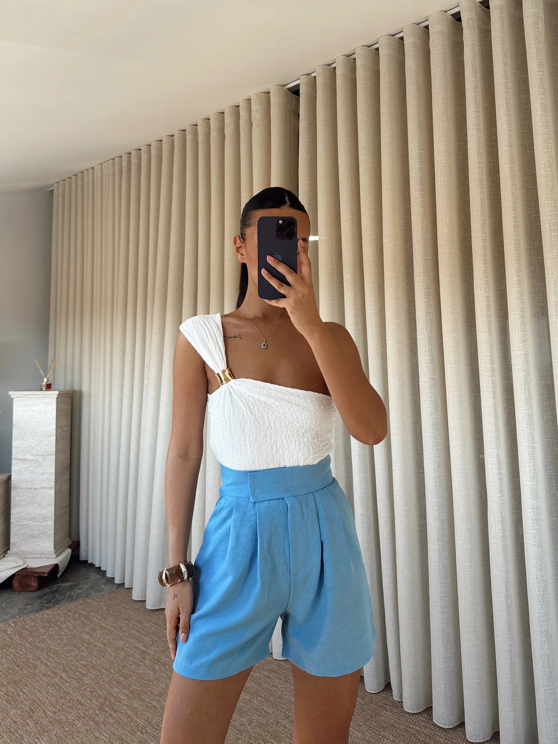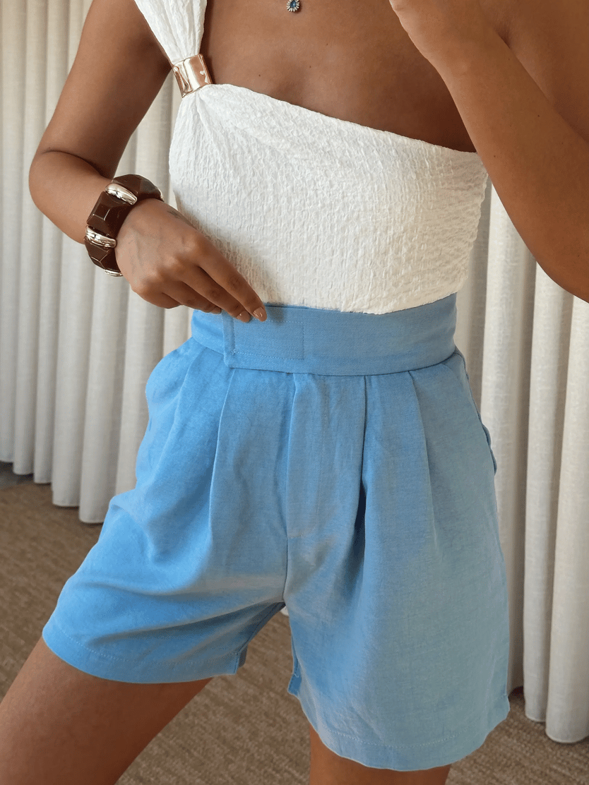 Cırtlı Keten Şort - Mavi (MD3913_Mavi)