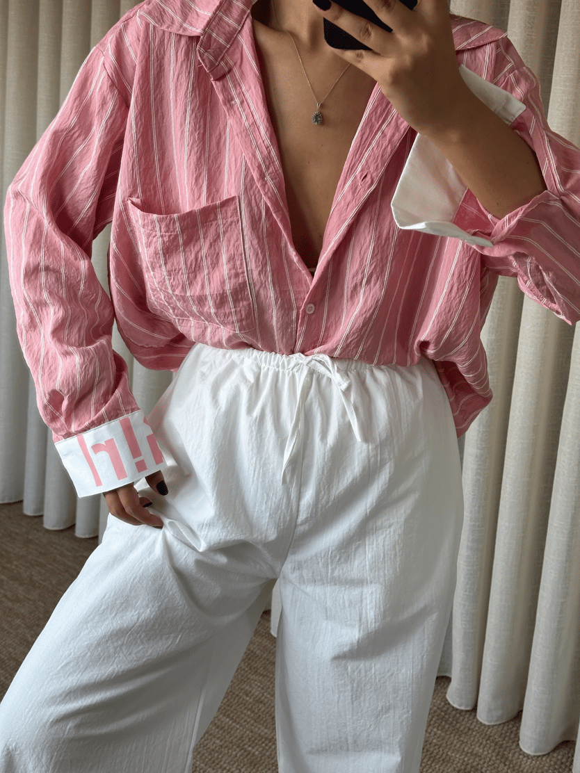 Çizgili Gömlekli Takım - Pudra Pembe (MYD2565_Pudra Pembe)