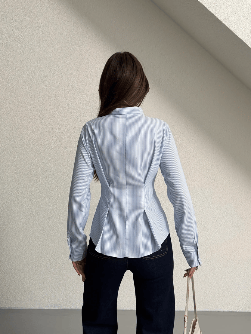 Çizgili Pensli Gömlek - Mavi (MD4327_Mavi)
