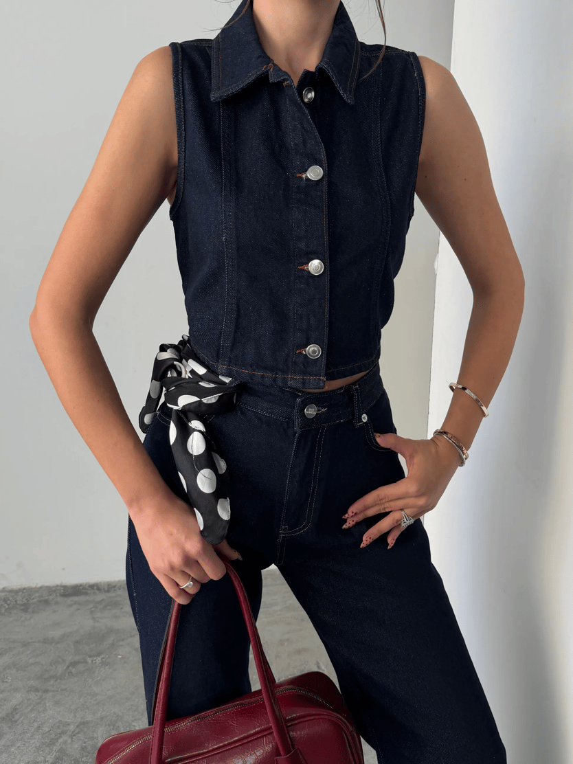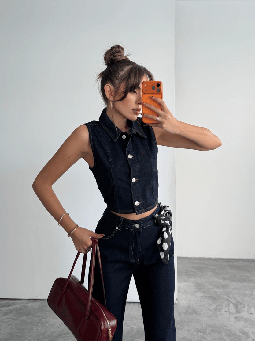 Crop Denim Yelek - Lacivert (MYD9564_Lacivert)