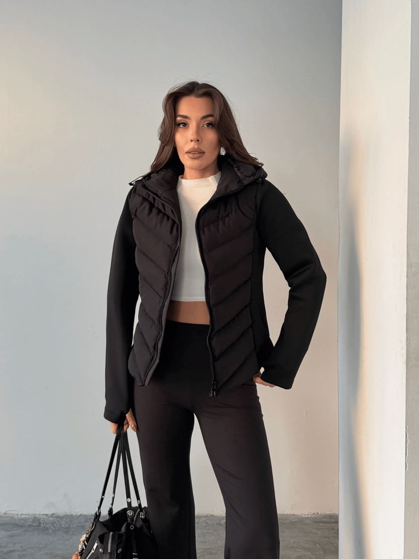 Dalgıç Detay Kapüşonlu Şişme Mont - Siyah (MD4282_Siyah)