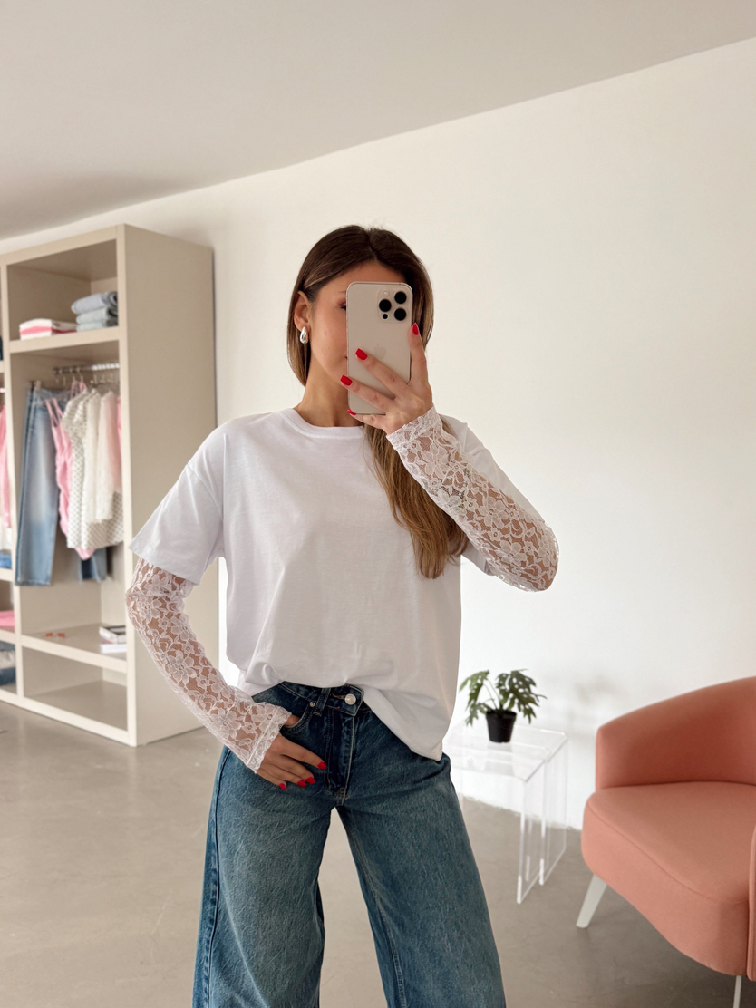 Dantel Kollu Basic T-shirt - Beyaz (MD4385_Beyaz)