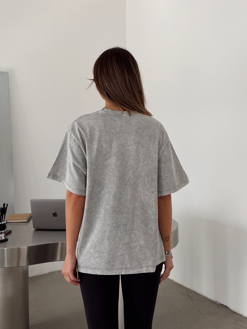 Delikli Yıkama T-shirt - Gri (MYD4621_Gri)