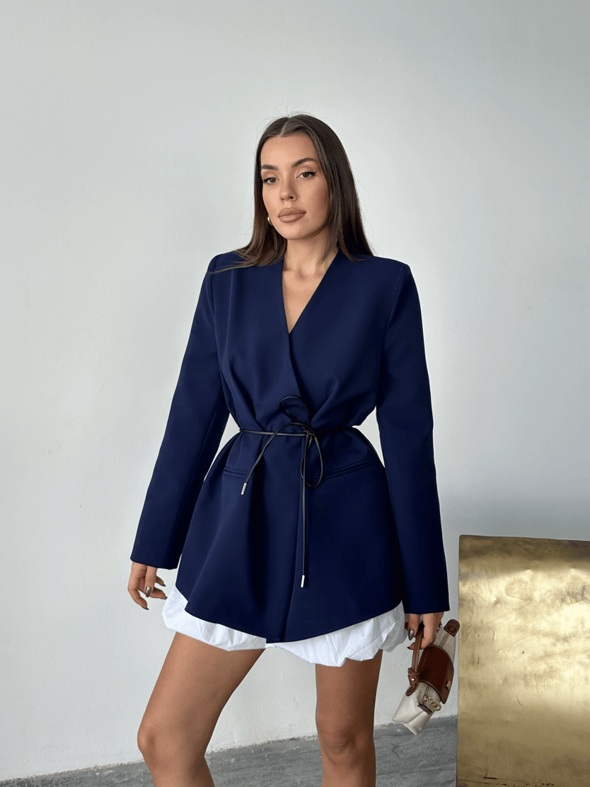 Deri Kemerli Blazer Ceket - Lacivert (MYD7497_Lacivert)
