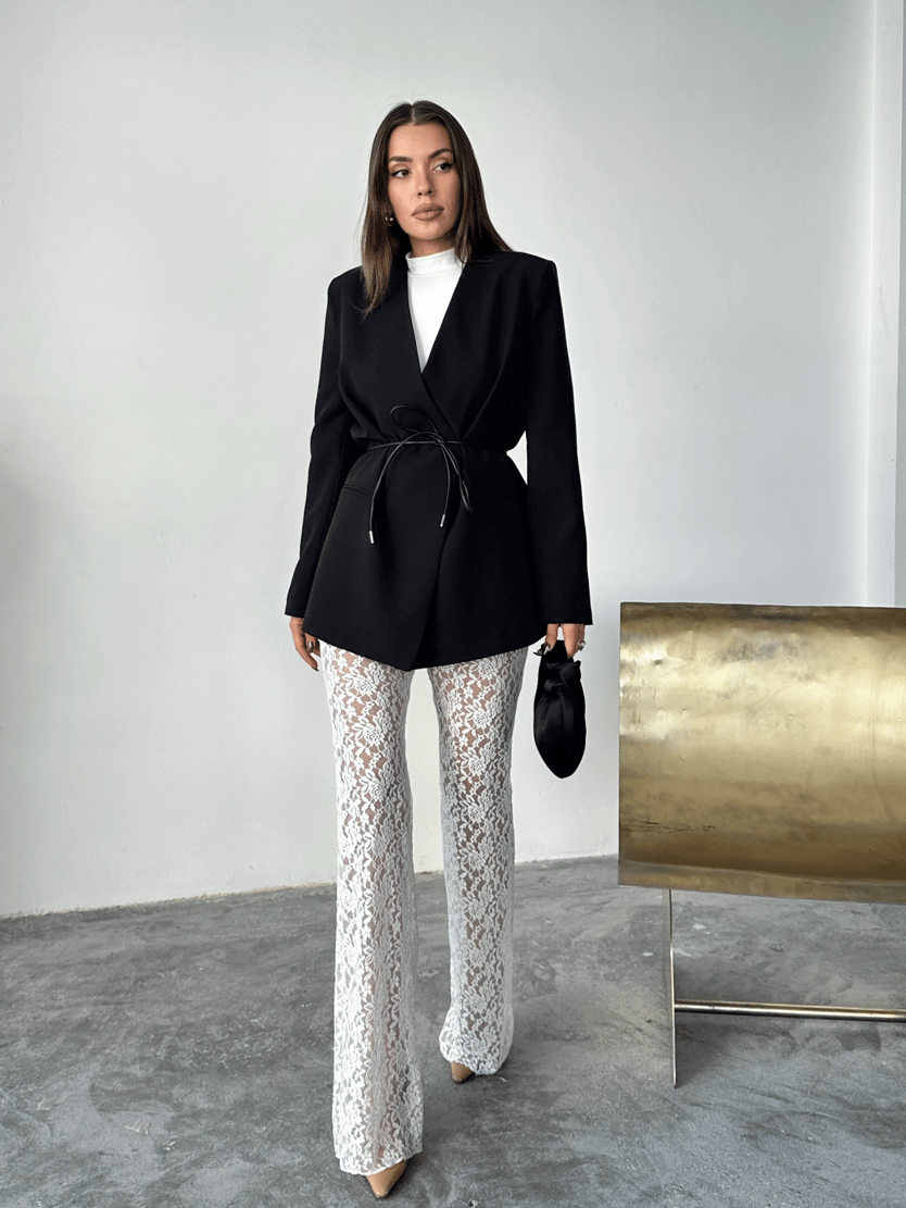 Deri Kemerli Blazer Ceket - Siyah (MYD7497_Siyah)