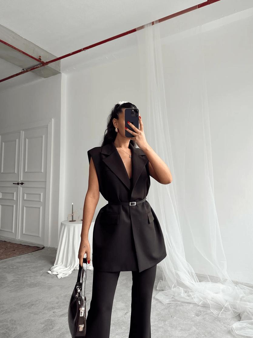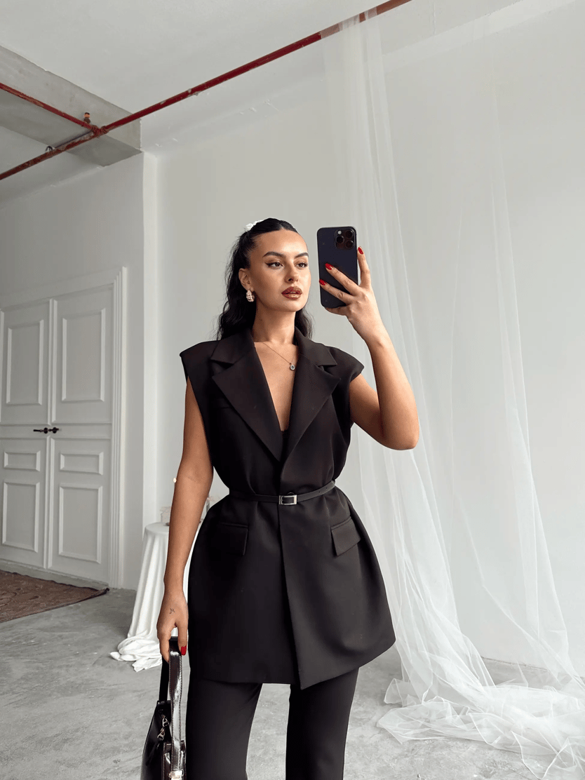 Deri Kemerli Yelek - Siyah (MYD7459_Siyah)